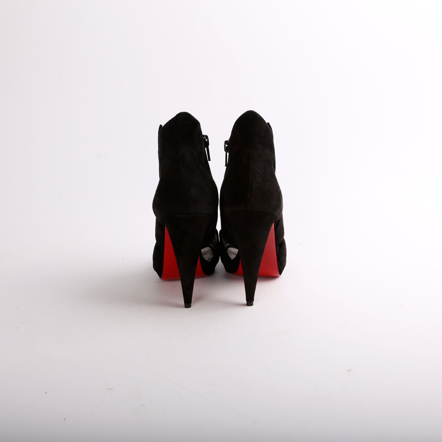 These pre-owned Christian Louboutin Belfemonica 120 Suede Booties are guaranteed 100% authentic.
