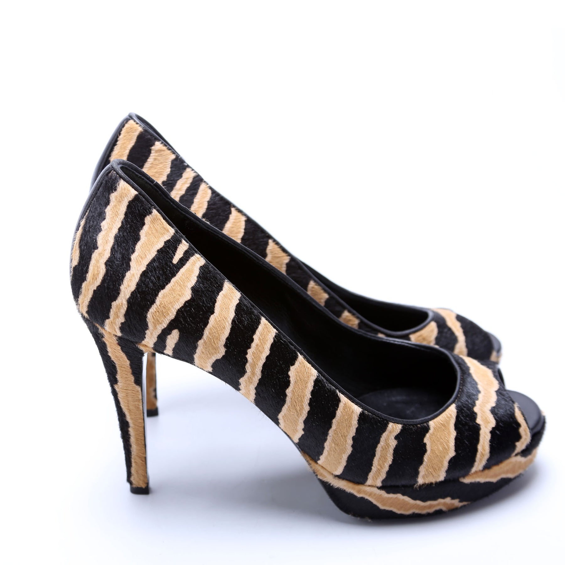 Betty Calfskin Hair Open Toe Pumps Size 37.5 Brown/Black