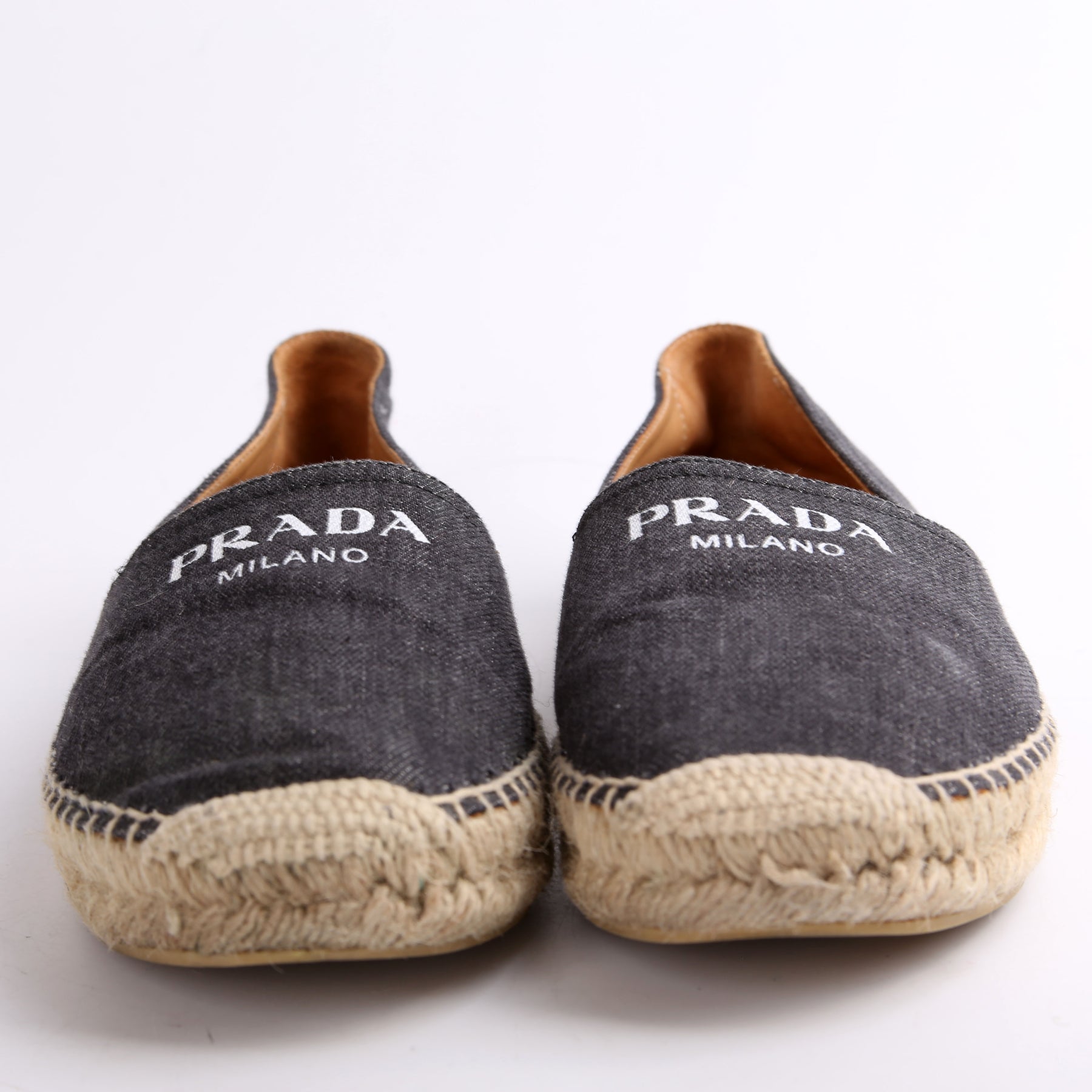 These pre-owned Prada Black Denim Logo Espadrilles are guaranteed 100% authentic.