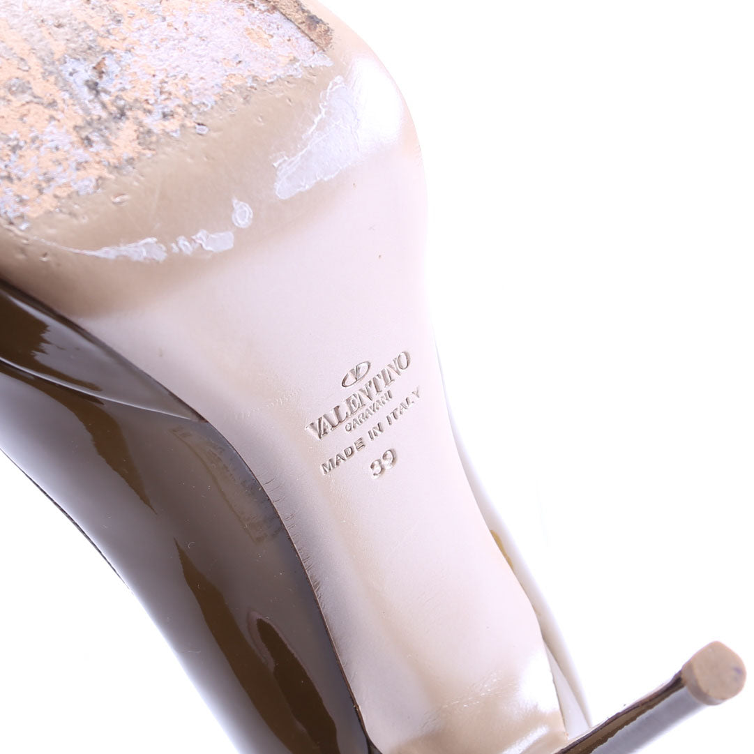 These pre-owned Valentino Bow Patent Platform Pumps are guaranteed 100% authentic.