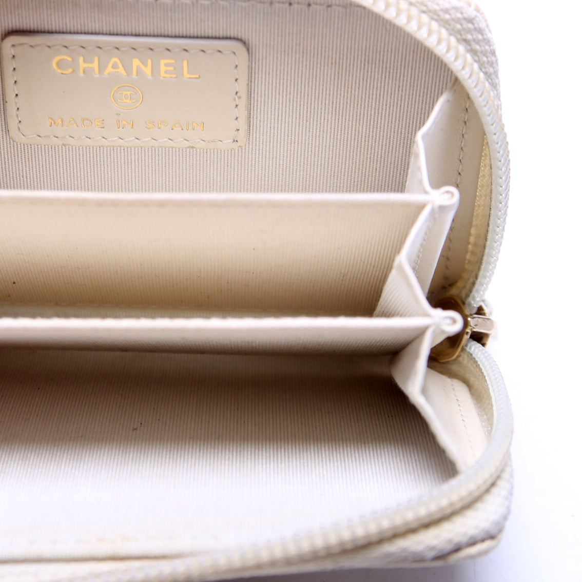 This pre-owned Chanel Boy Zip Around Coin Purse Caviar Chevron is guaranteed 100% authentic.
