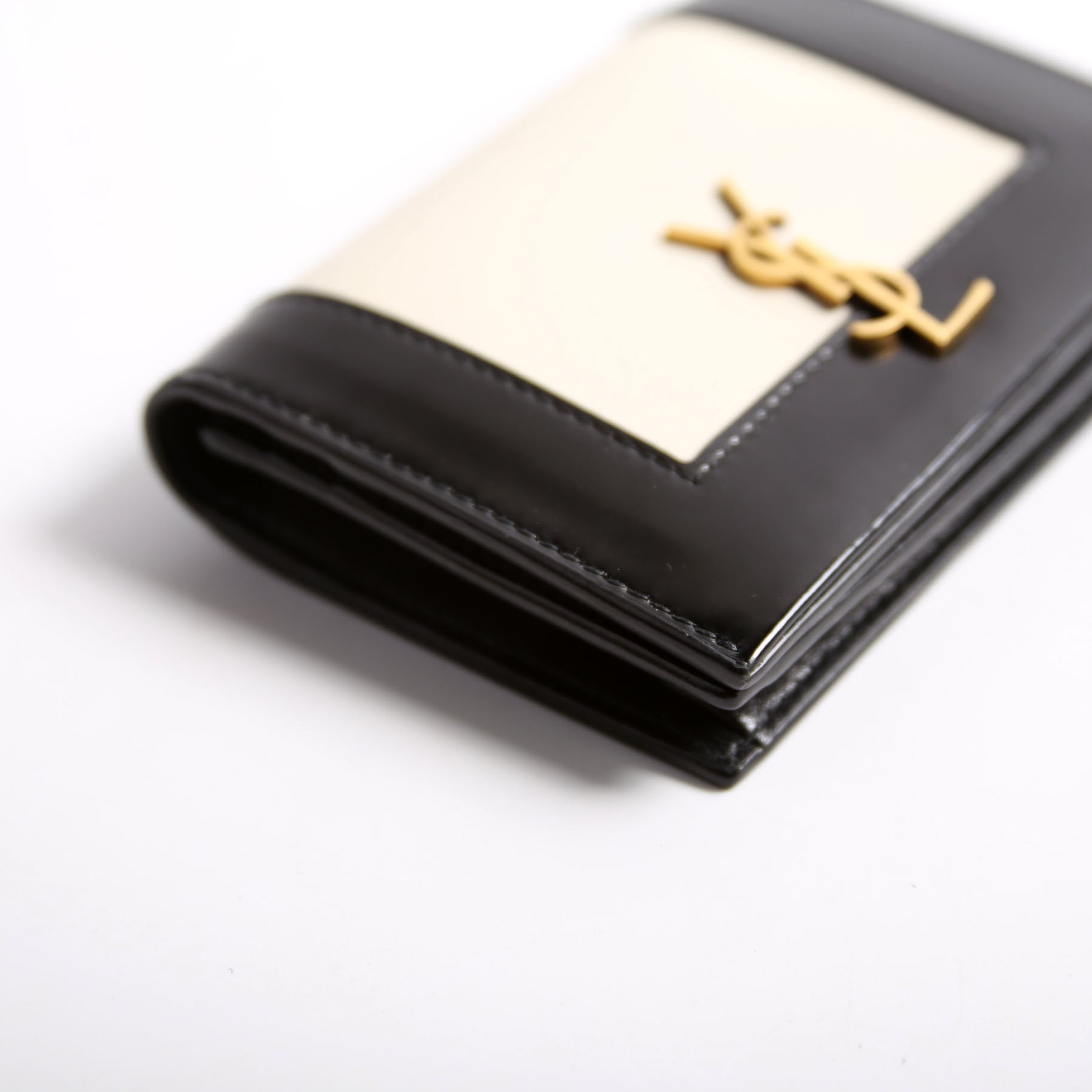 This pre-owned Saint Laurent Cassandre Bi-color Patent Flap Card Case is guaranteed 100% authentic.