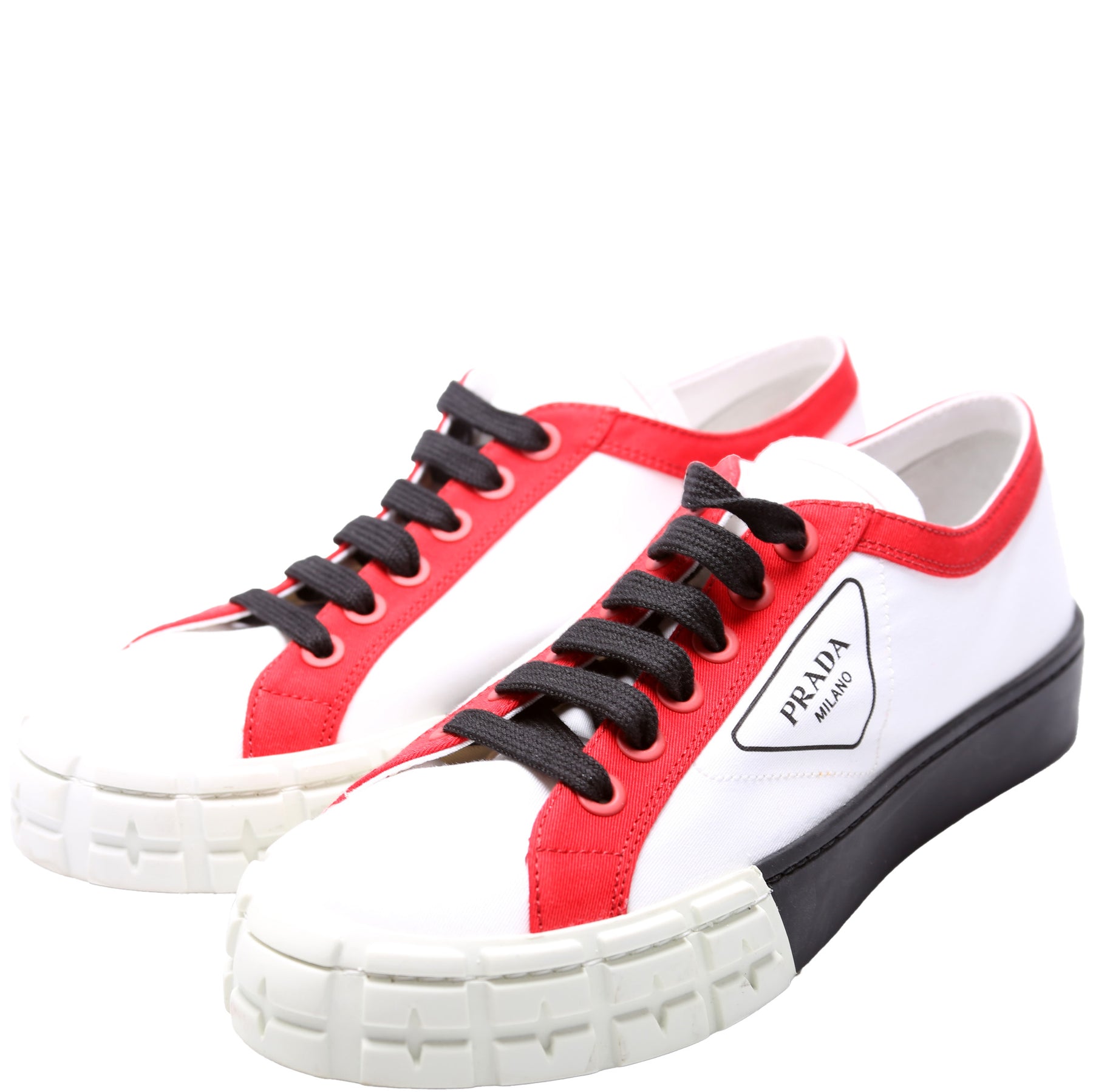 These pre-owned Prada Cassetta Wheel Canvas Sneakers are guaranteed 100% authentic.