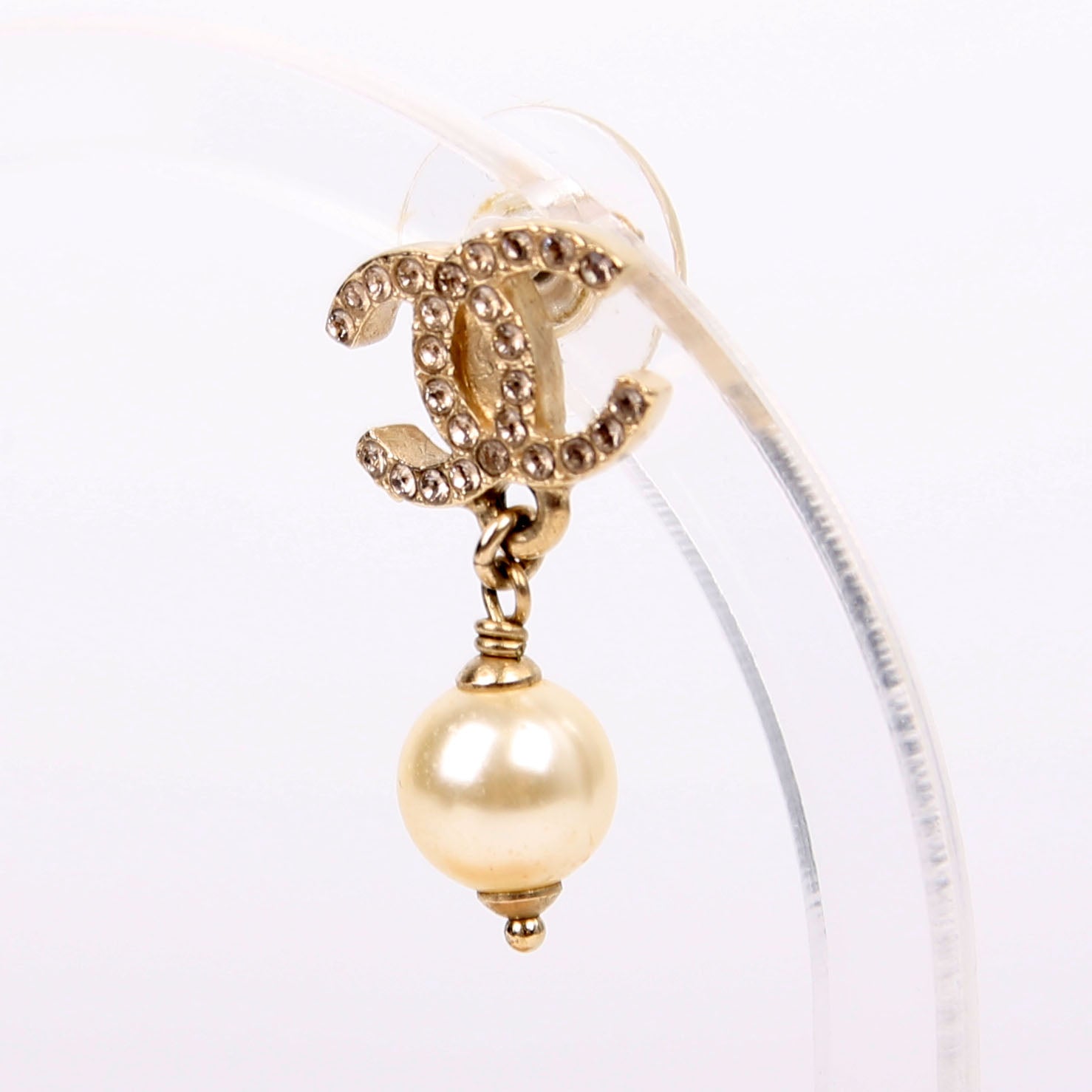 These pre-owned Chanel CC Crystal Pearl Drop Earrings are guaranteed 100% authentic.