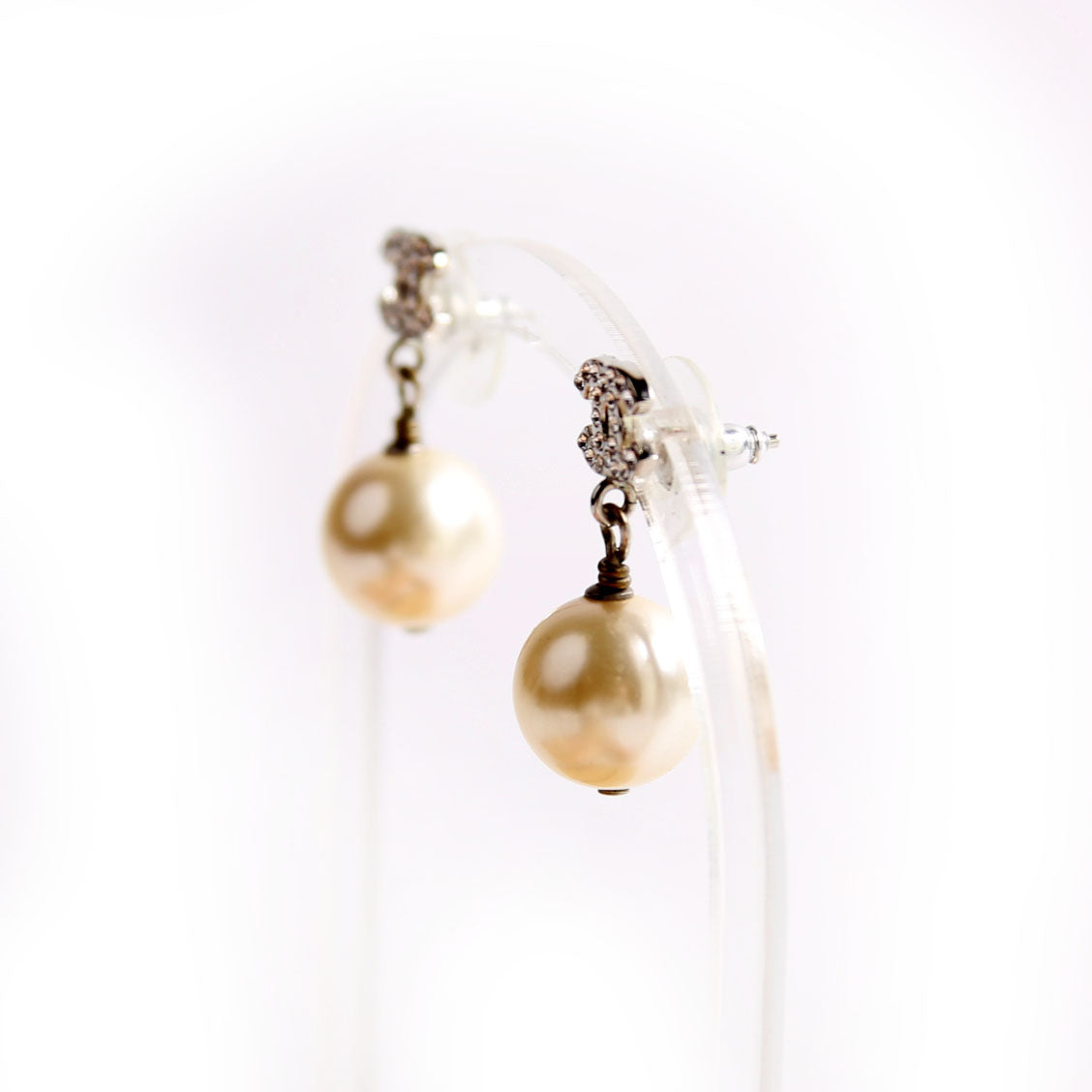 These pre-owned Chanel CC Crystal Pearl Drop Earrings are guaranteed 100% authentic.