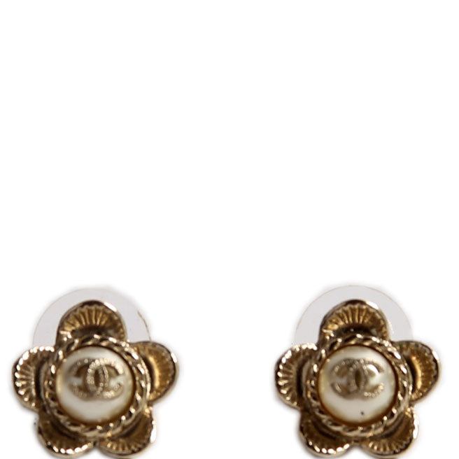 These pre-owned Chanel CC Faux Pearl Flower Stud Earrings are guaranteed 100% authentic.
