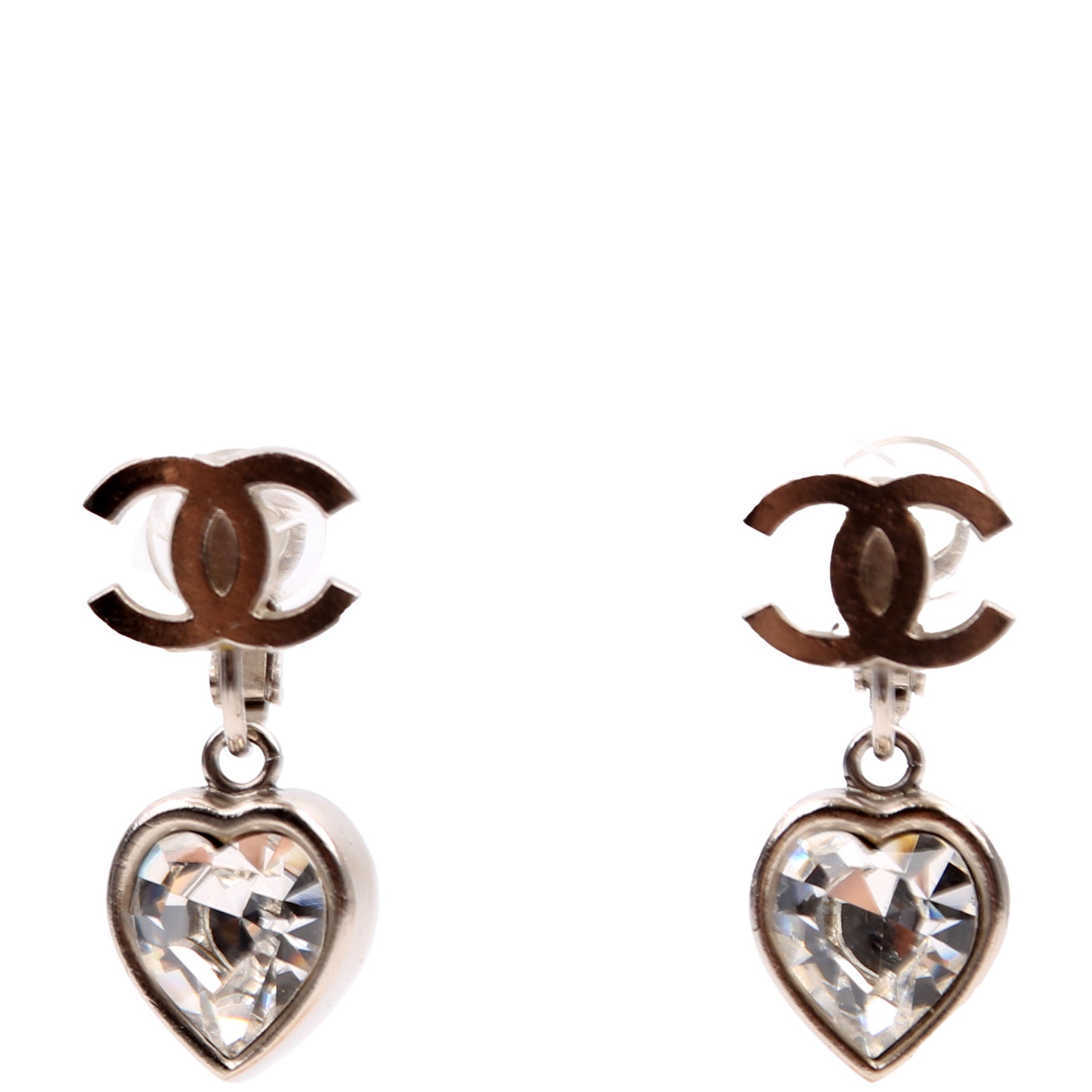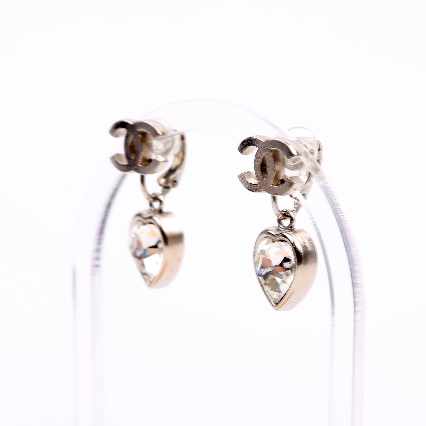 These pre-owned Chanel CC Heart Rhinestone Drop Clip On Earrings are guaranteed 100% authentic.