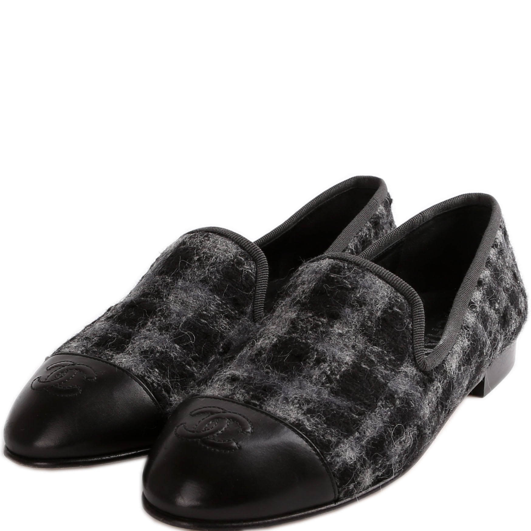 These pre-owned Chanel CC Tweed Loafers are guaranteed 100% authentic.