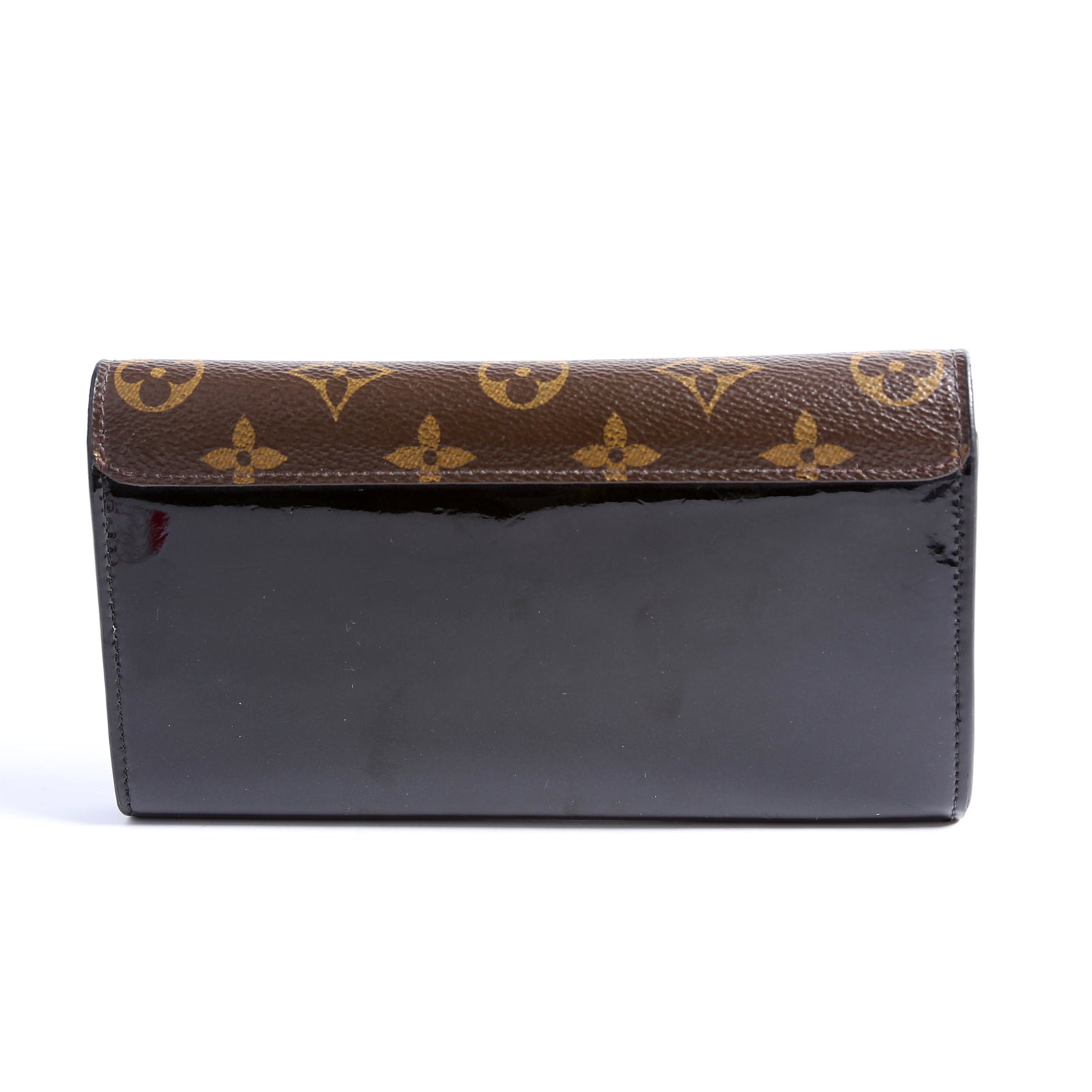 This pre-owned Louis Vuitton Cherrywood Long Wallet is guaranteed 100% authentic. The exterior is in the classic Louis Vuitton Monogram coated canvas and patent leather.