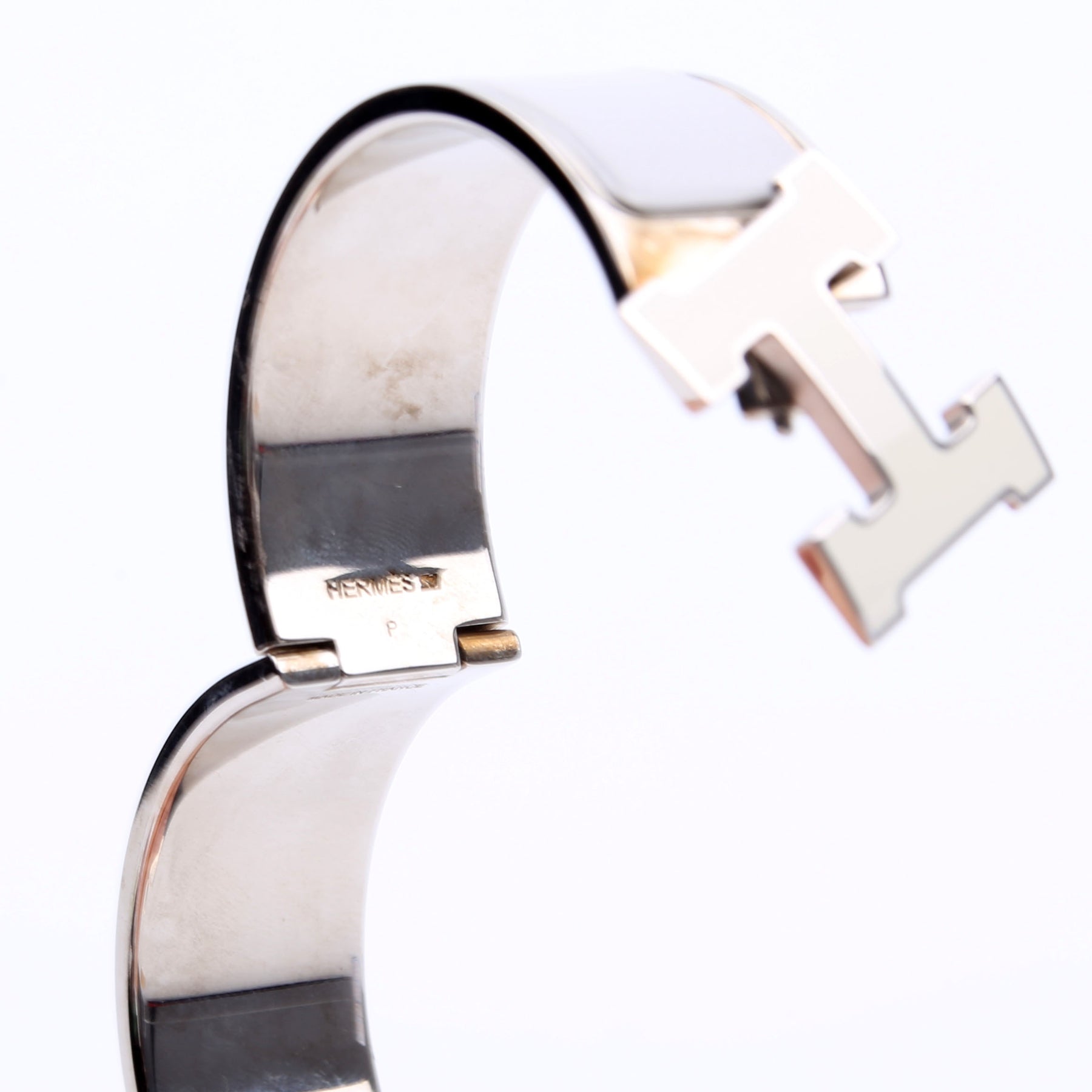 This pre-owned Hermes Clic Clac Enamel H Wide PM Bracelet is guaranteed 100% authentic.