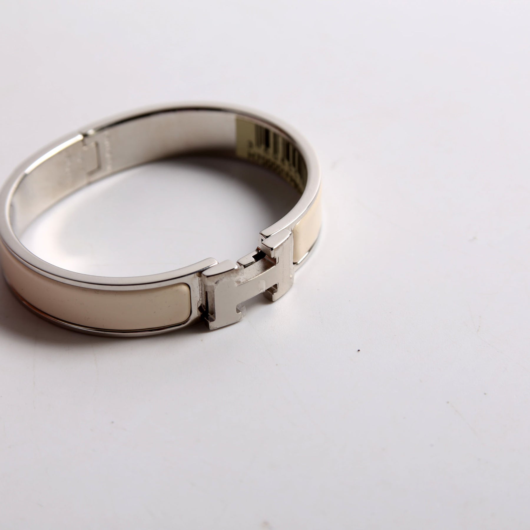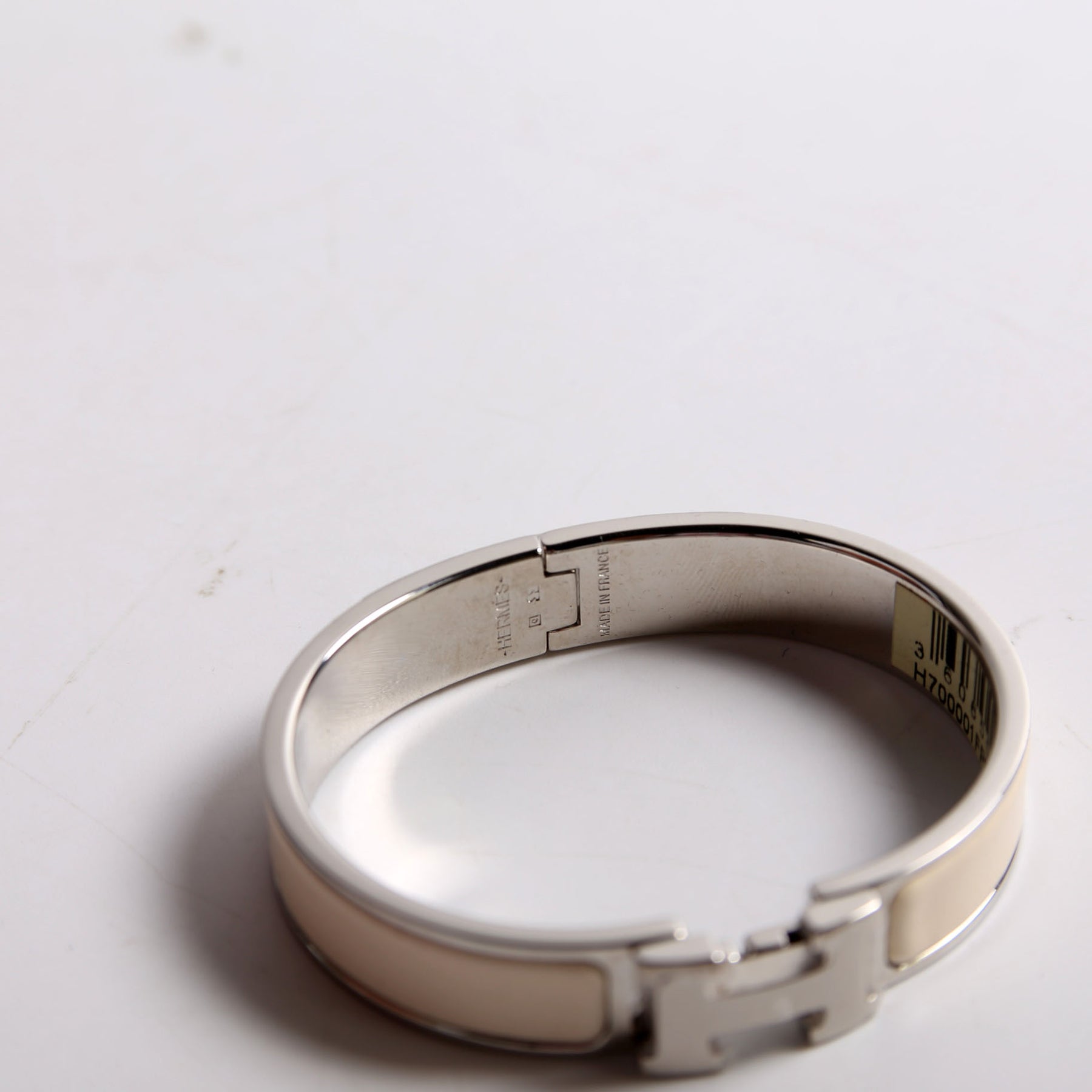 This pre-owned Hermes Clic Clac Narrow PM Bracelet is guaranteed 100% authentic.