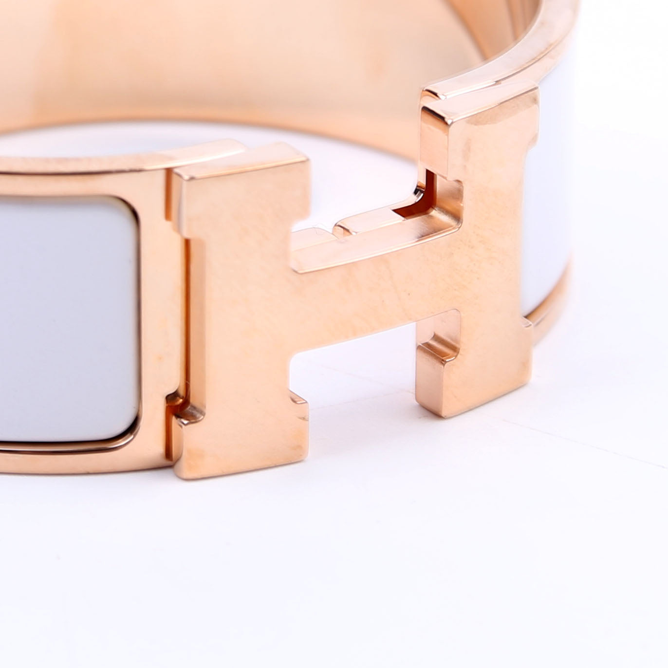 This pre-owned Hermes Clic Clac Wide PM Bracelet is guaranteed 100% authentic.