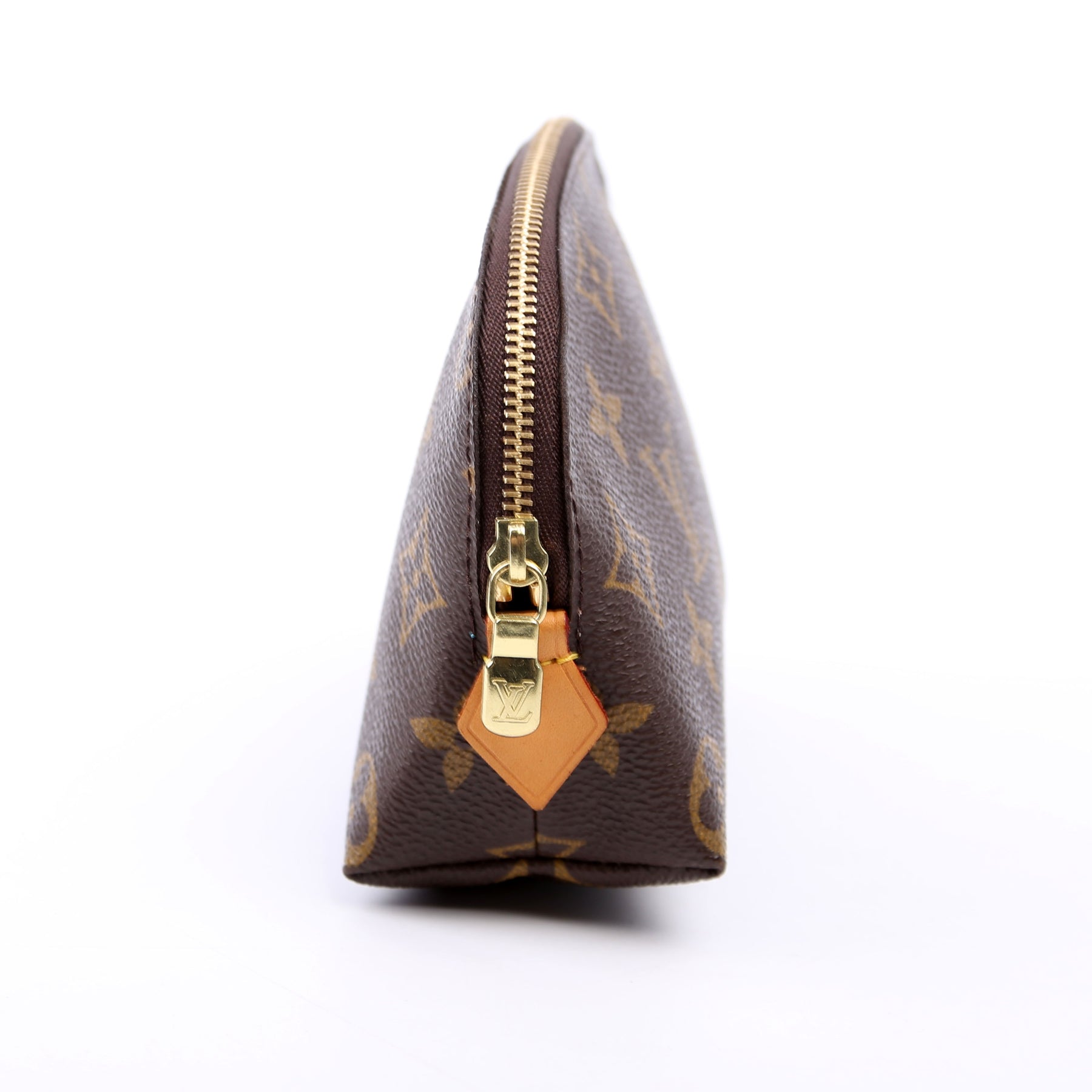 This pre-owned Louis Vuitton Cosmetic Pouch PM is guaranteed 100% authentic. The exterior is in the classic Louis Vuitton Monogram coated canvas.