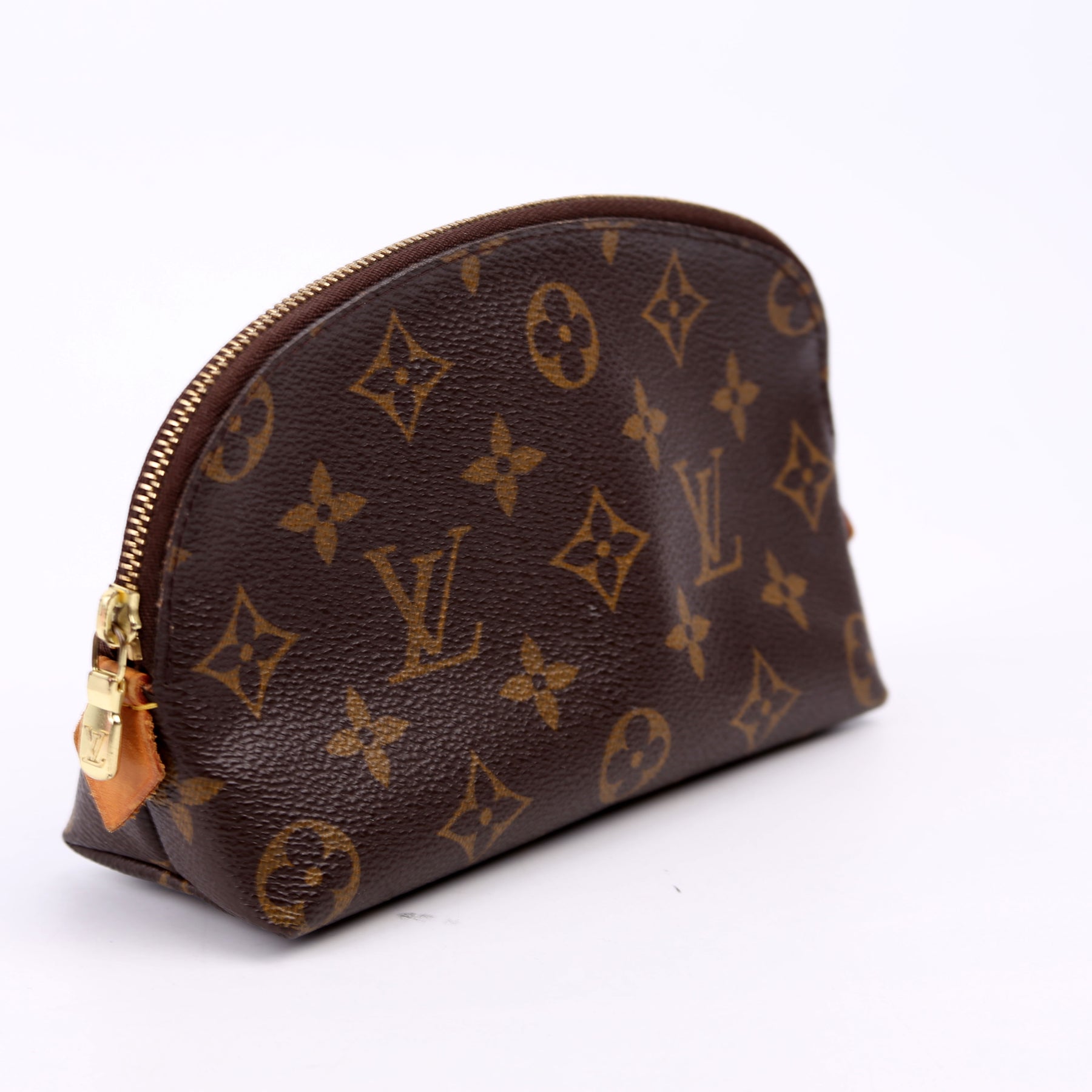 This pre-owned Louis Vuitton Cosmetic Pouch PM is guaranteed 100% authentic. The exterior is in the classic Louis Vuitton Monogram coated canvas.