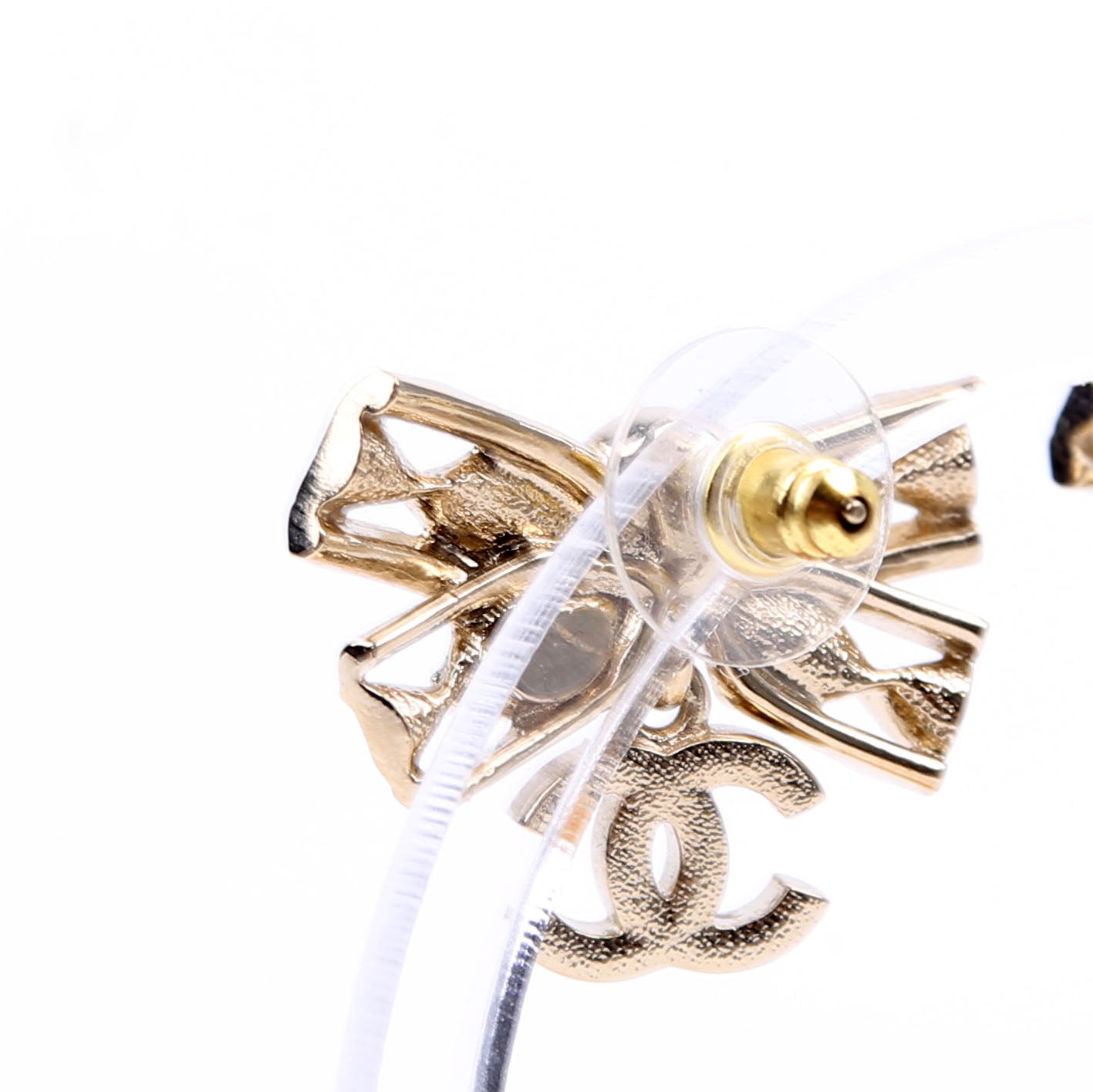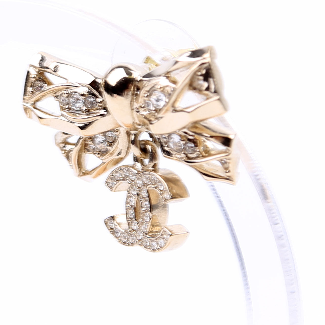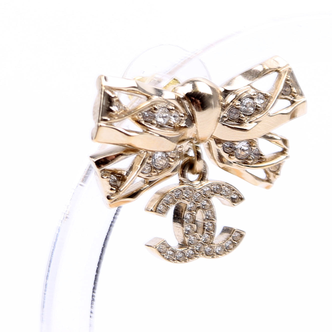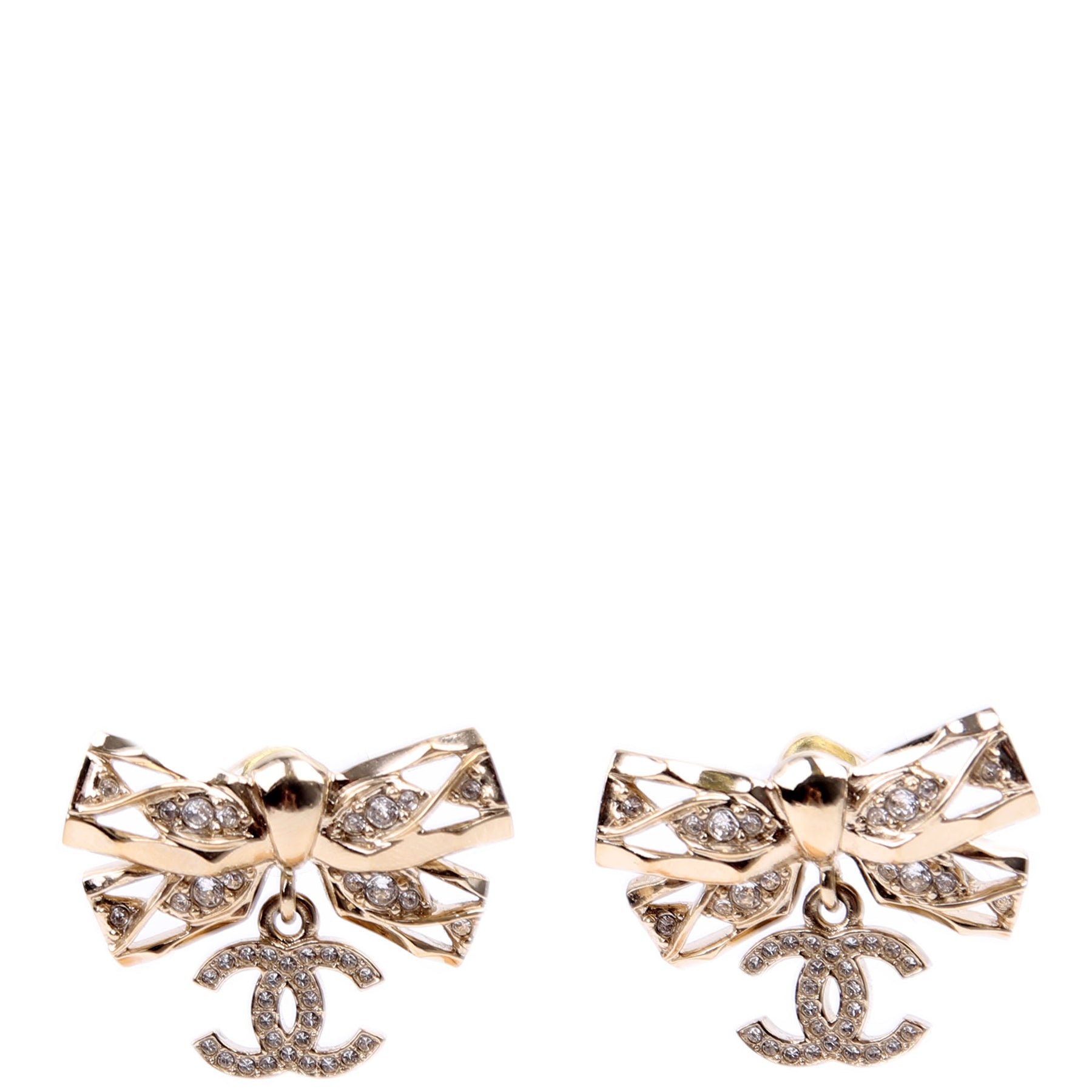 These pre-owned Chanel Crystal Bow CC Drop Earrings are guaranteed 100% authentic.