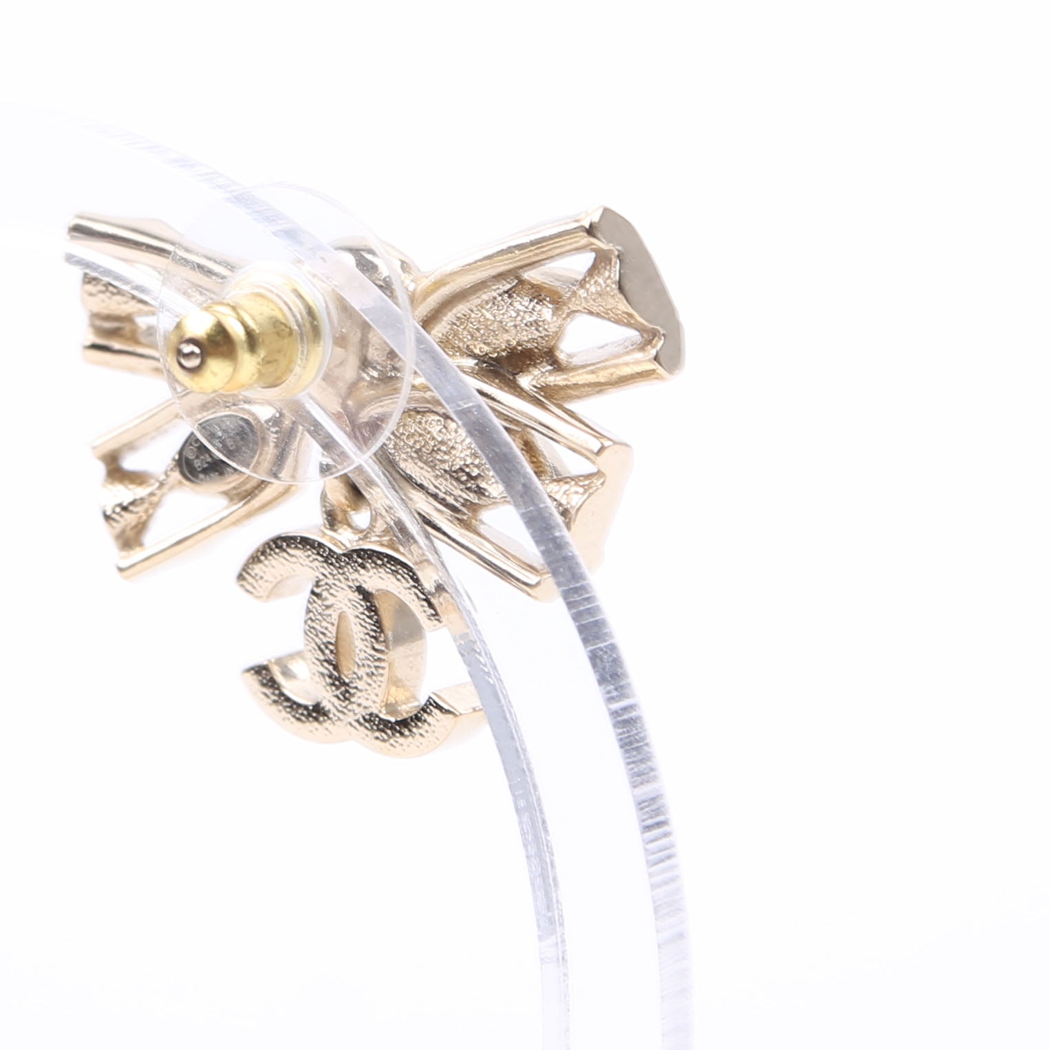 Crystal Bow CC Drop Earrings Gold
