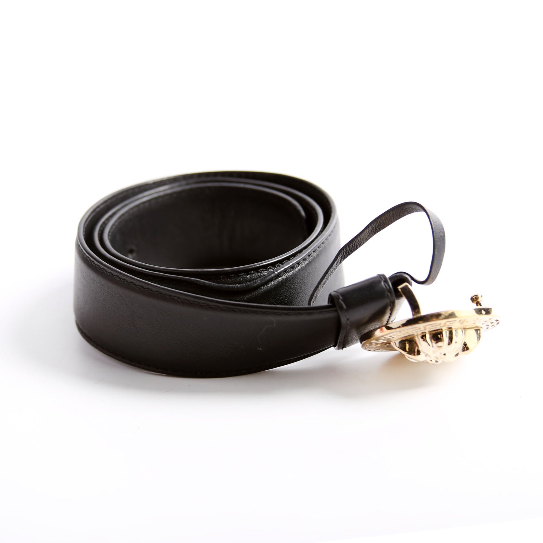 This pre-owned Versace Medusa Round Leather Belt is guaranteed 100% authentic.