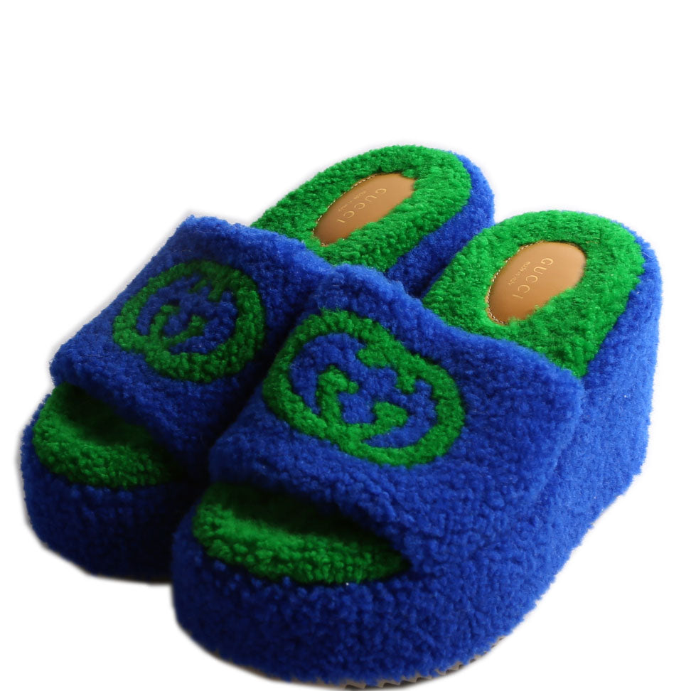 These pre-owned Gucci Elea Shearling Wedge Slides are guaranteed 100% authentic.