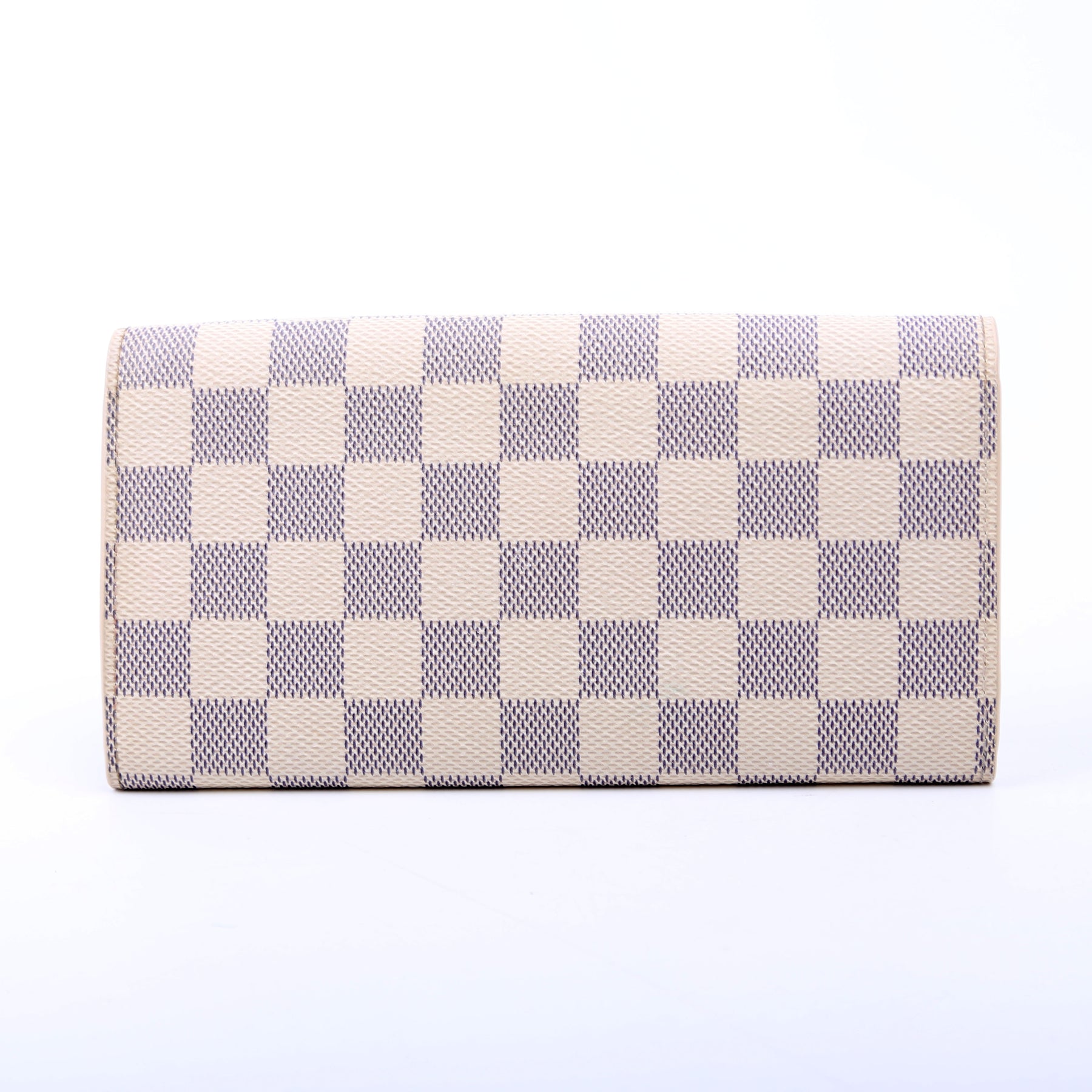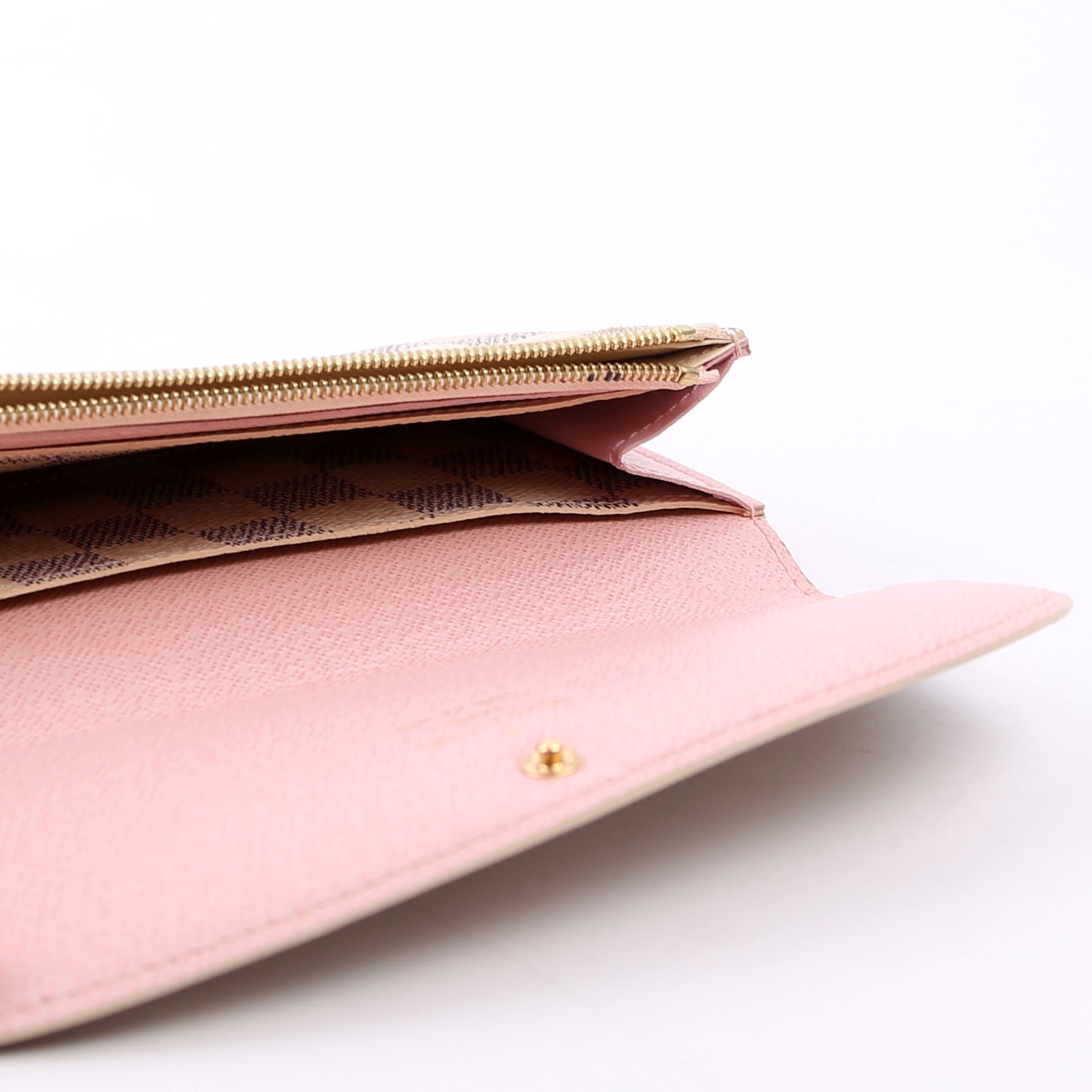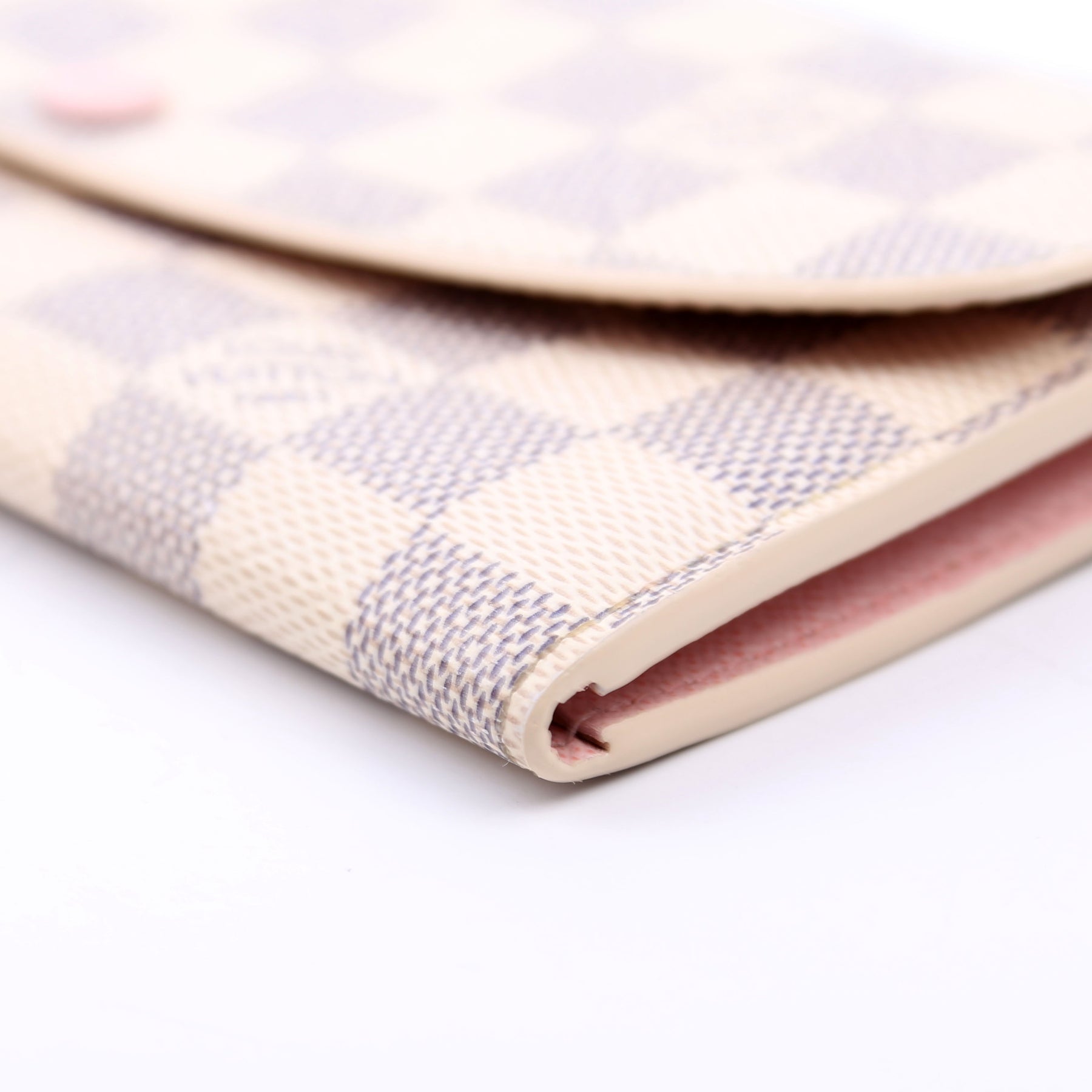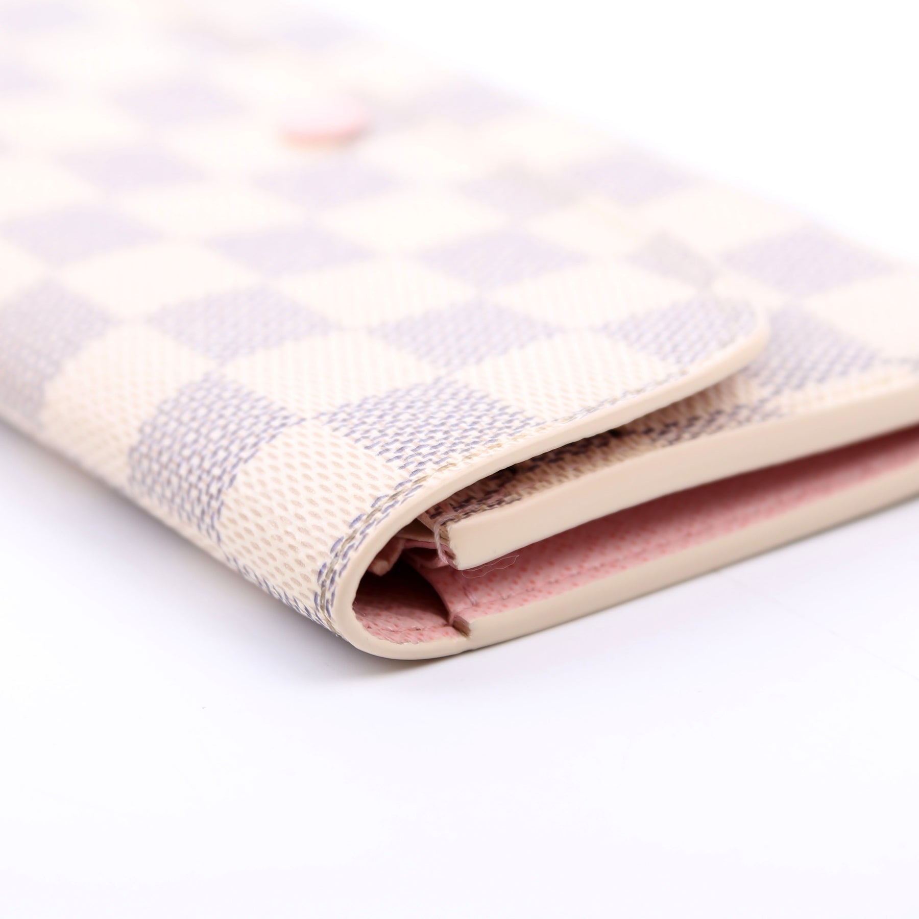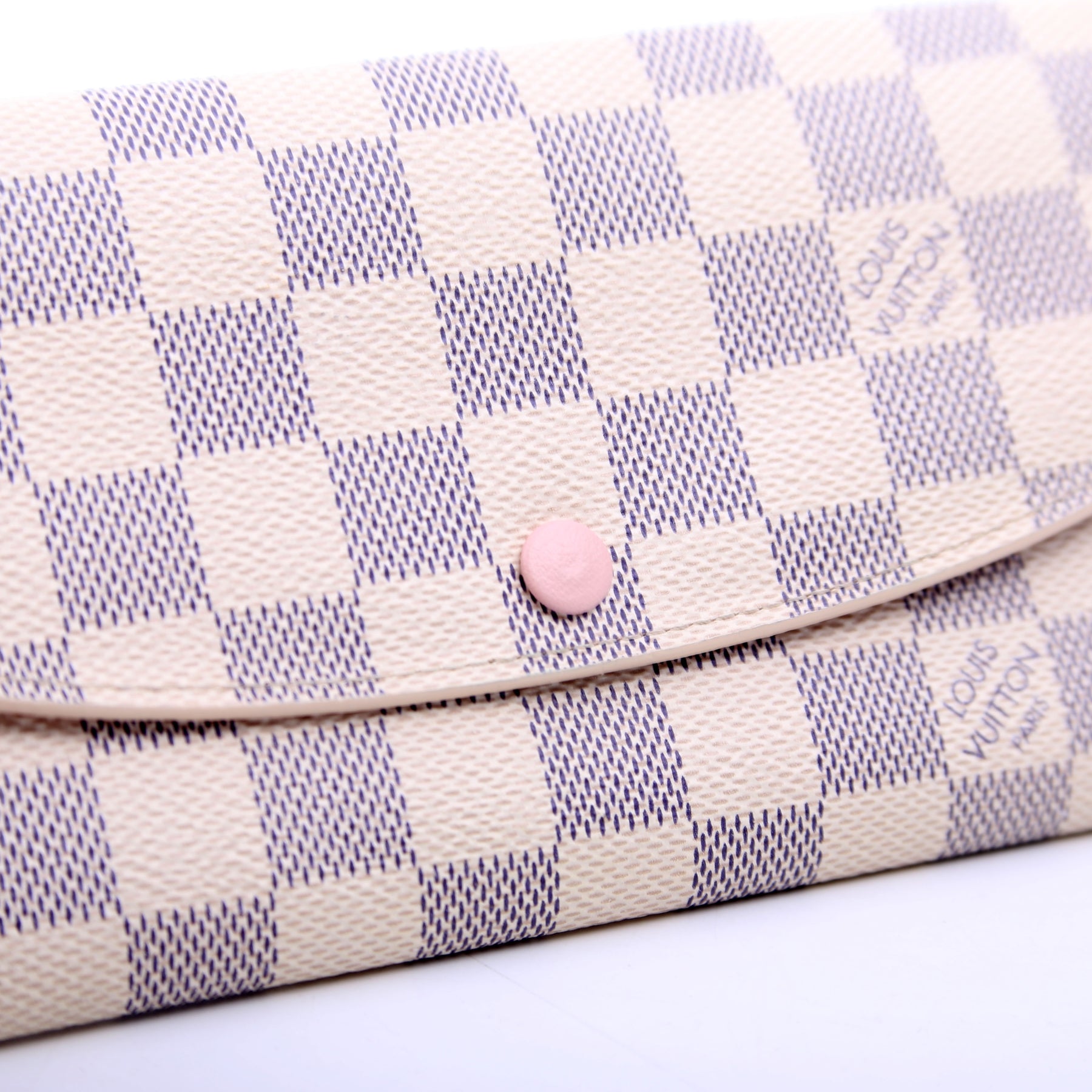 This pre-owned Louis Vuitton Emilie Wallet is guaranteed 100% authentic. The exterior is in the classic Louis Vuitton Damier Azur coated canvas.