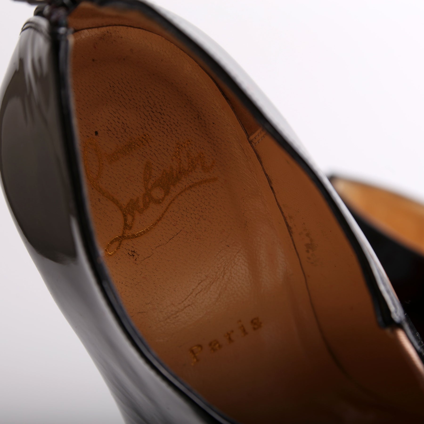 These pre-owned Christian Louboutin Estanodo 120 Patent Booties are guaranteed 100% authentic.