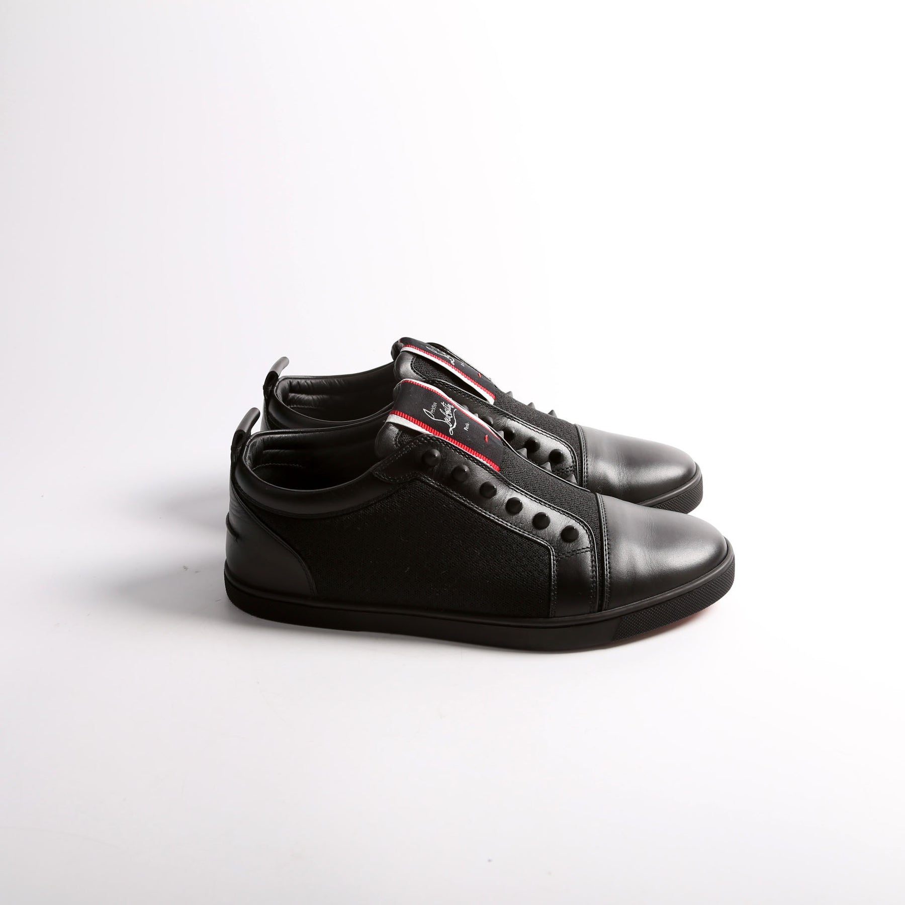 These pre-owned Christian Louboutin F.A.V. Fique A Vontade Spike Sneakers are guaranteed 100% authentic.