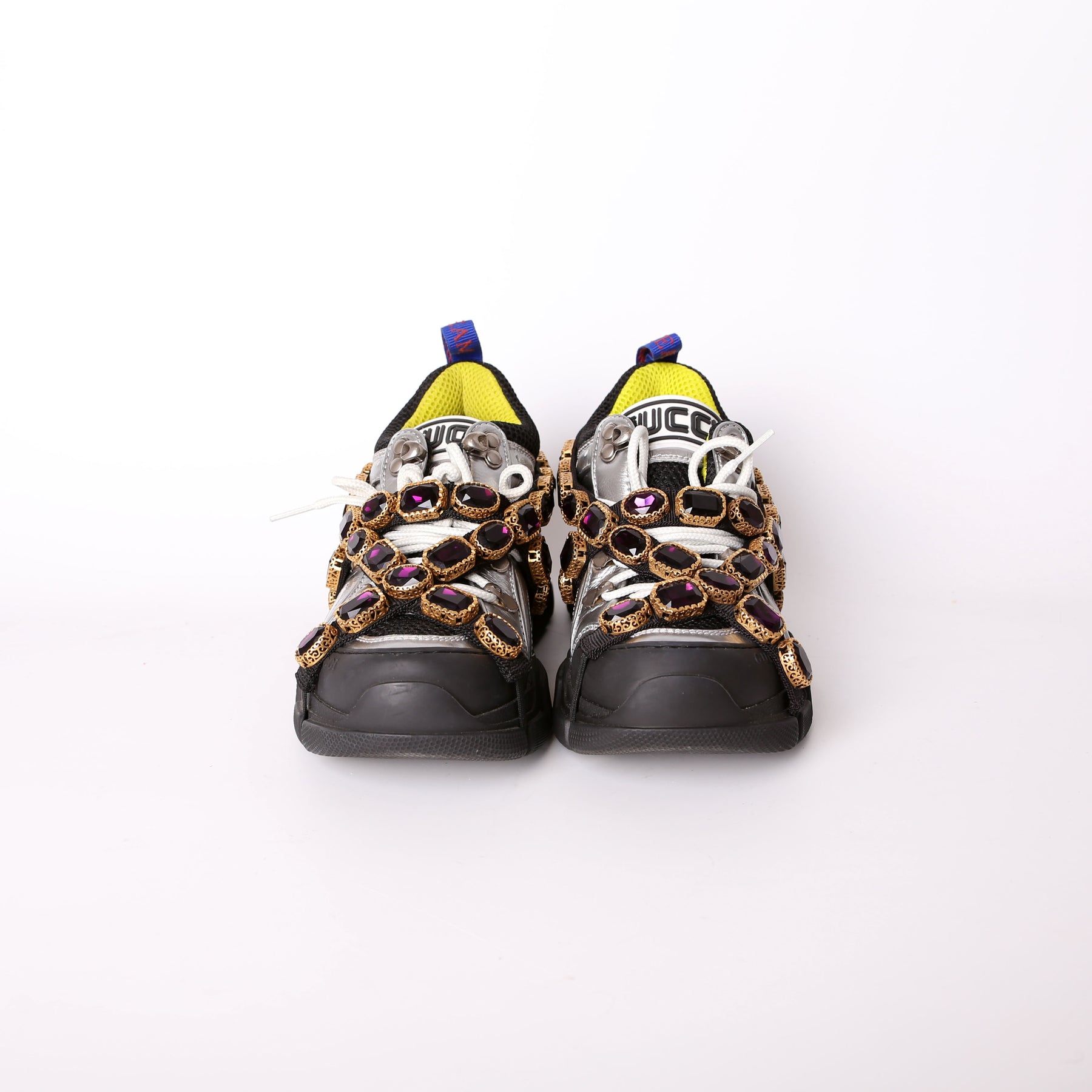 These pre-owned Gucci Flashtrek Jeweled Sneakers are guaranteed 100% authentic.