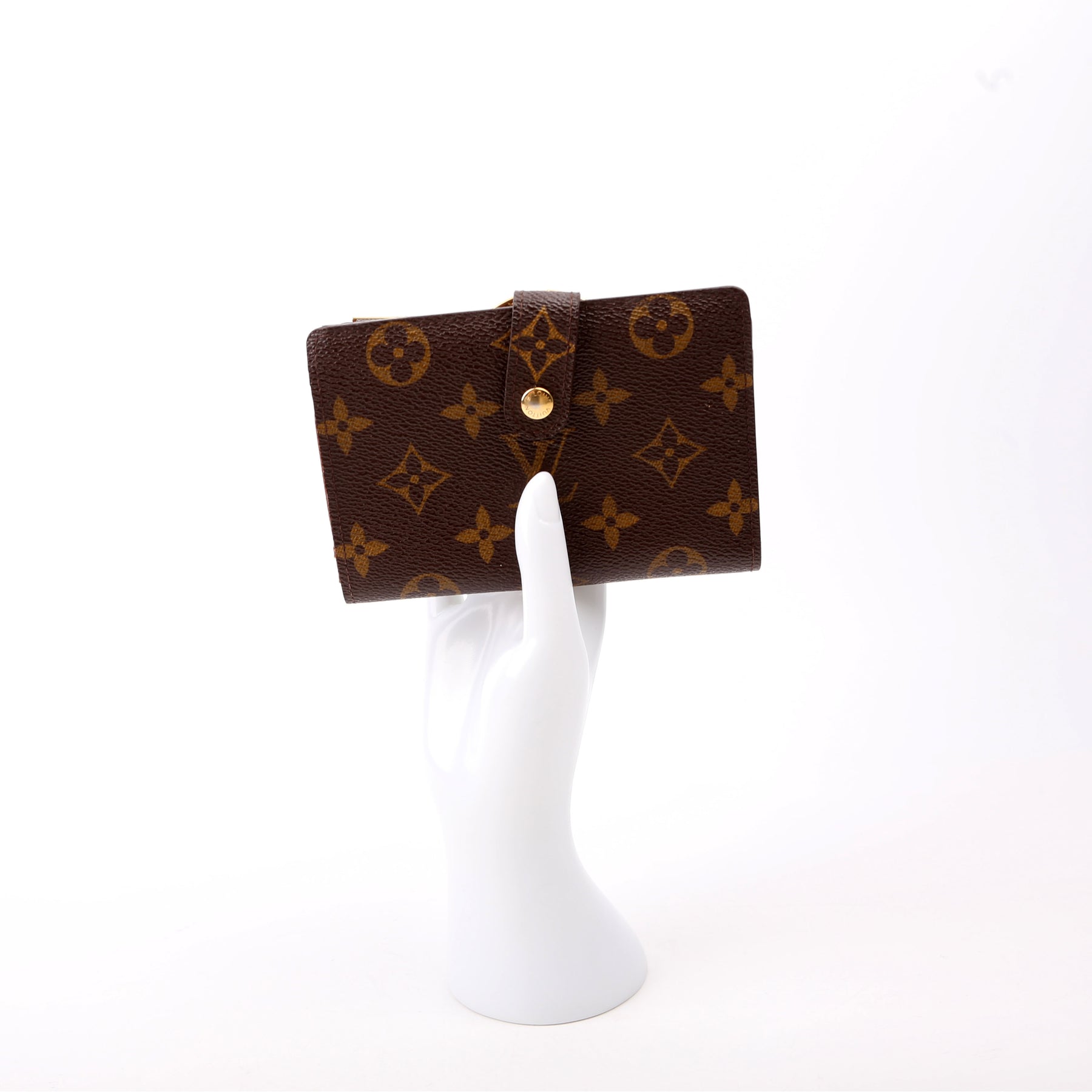 This pre-owned Louis Vuitton French Purse Wallet is guaranteed 100% authentic. The exterior is in the classic Louis Vuitton Monogram coated canvas.