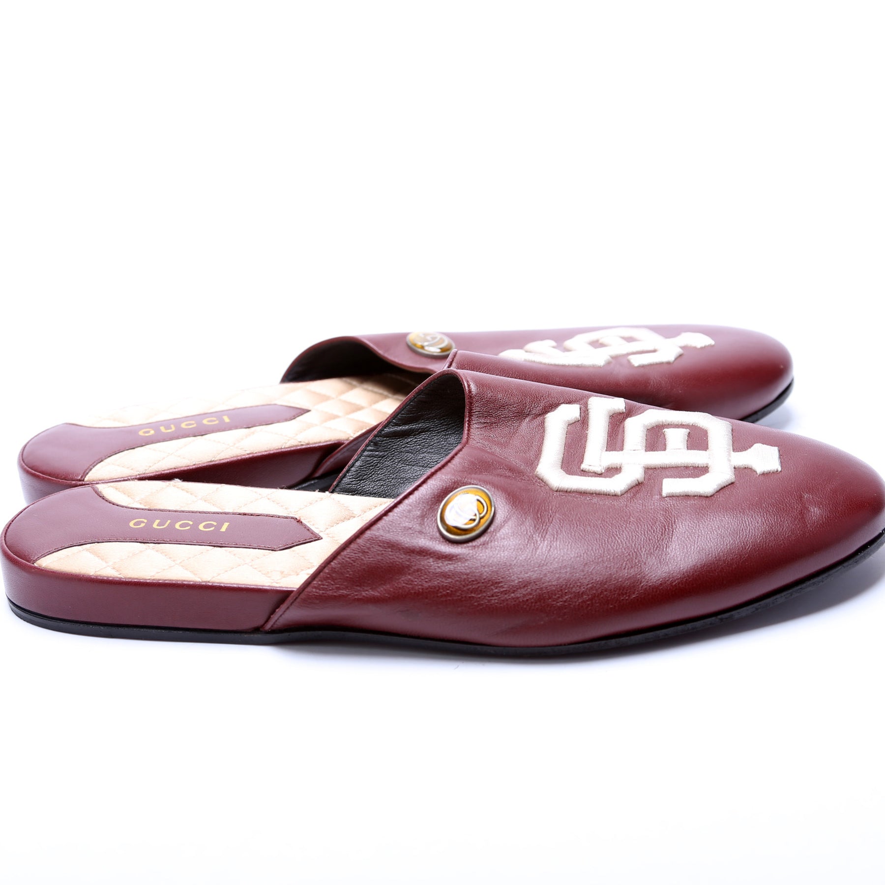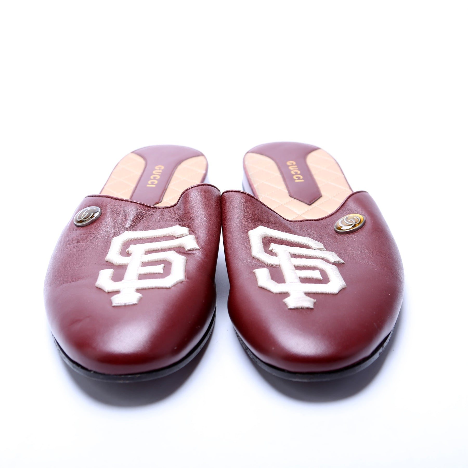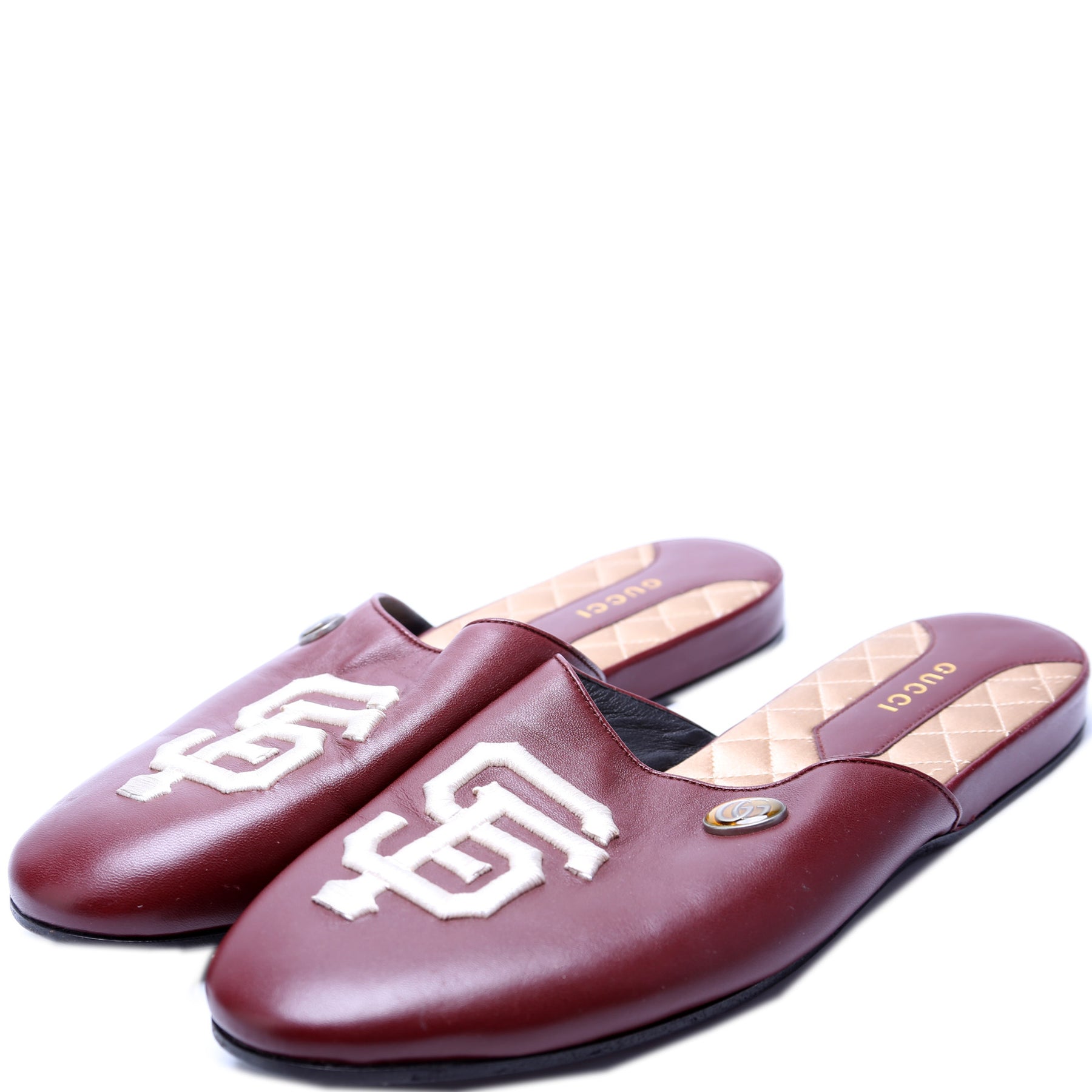 These pre-owned Gucci Giants Logo Mules are guaranteed 100% authentic.