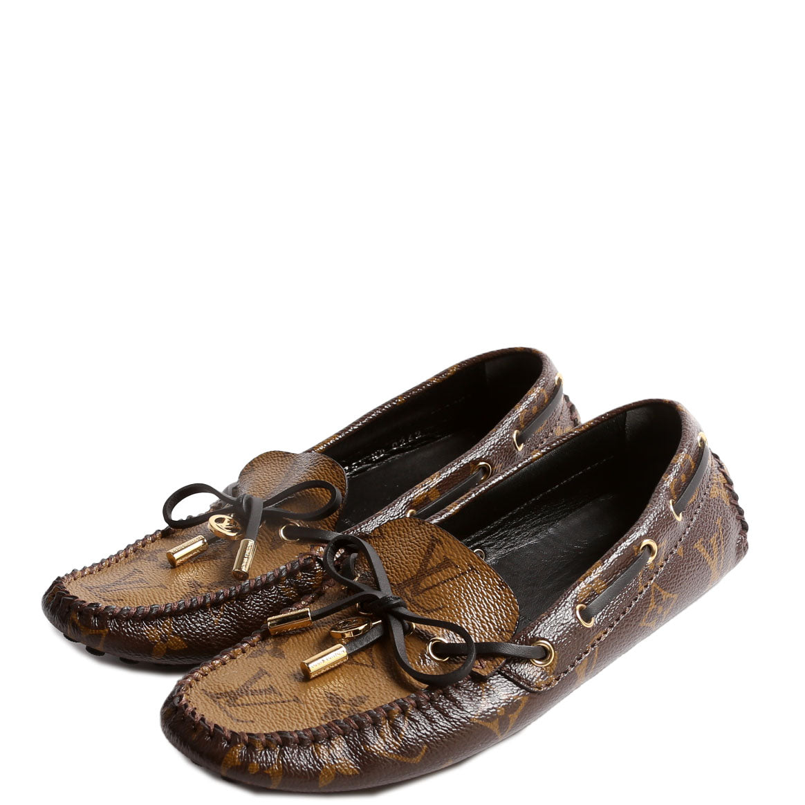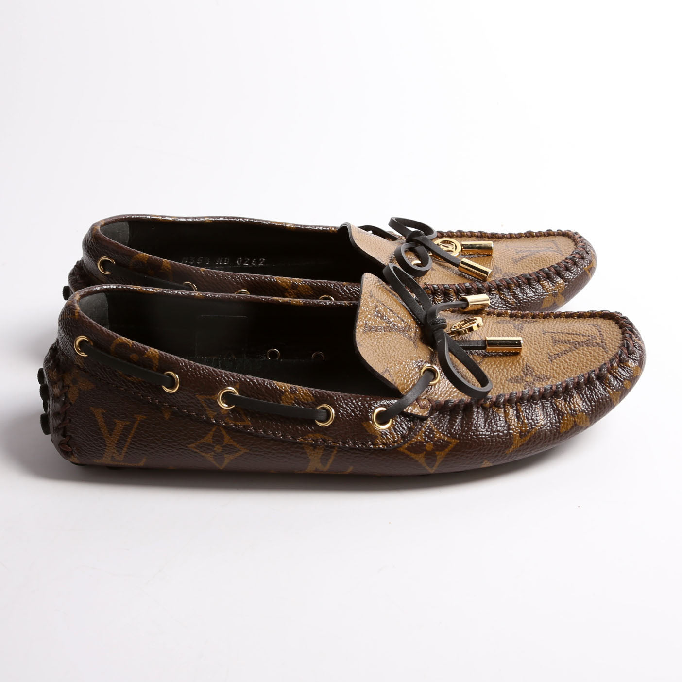 These pre-owned Louis Vuitton Gloria Loafer Reverse Monogram are guaranteed 100% authentic.