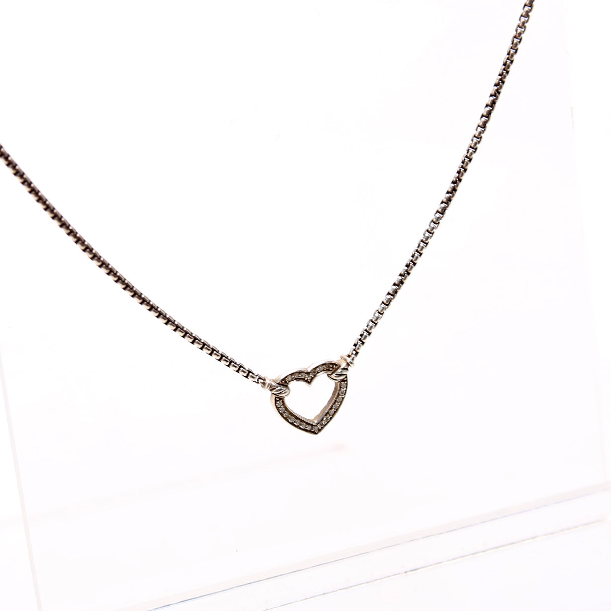 This pre-owned David Yurman Heart Station Necklace 925/PAVE is guaranteed 100% authentic.