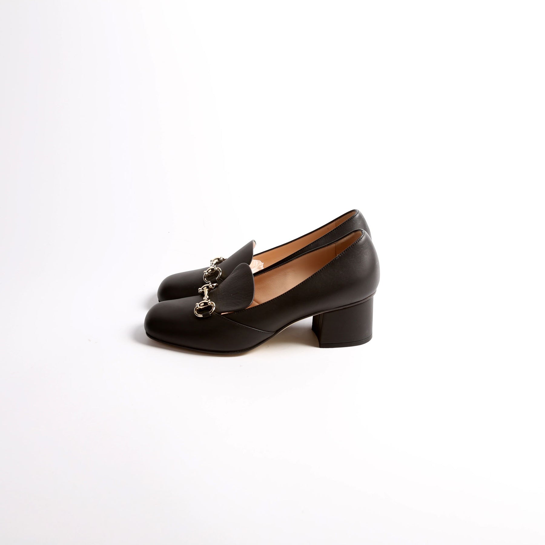 Horsebit Soft Calfskin Loafer Pumps Size 37 Black