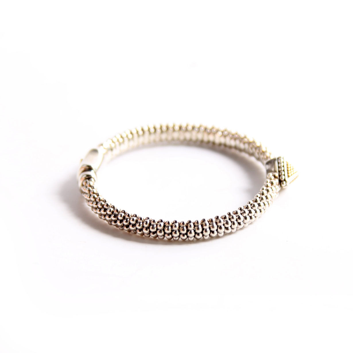 This pre-owned Lagos KSL Caviar Single Station Pyramid 6mm Bracelet is guaranteed 100% authentic.