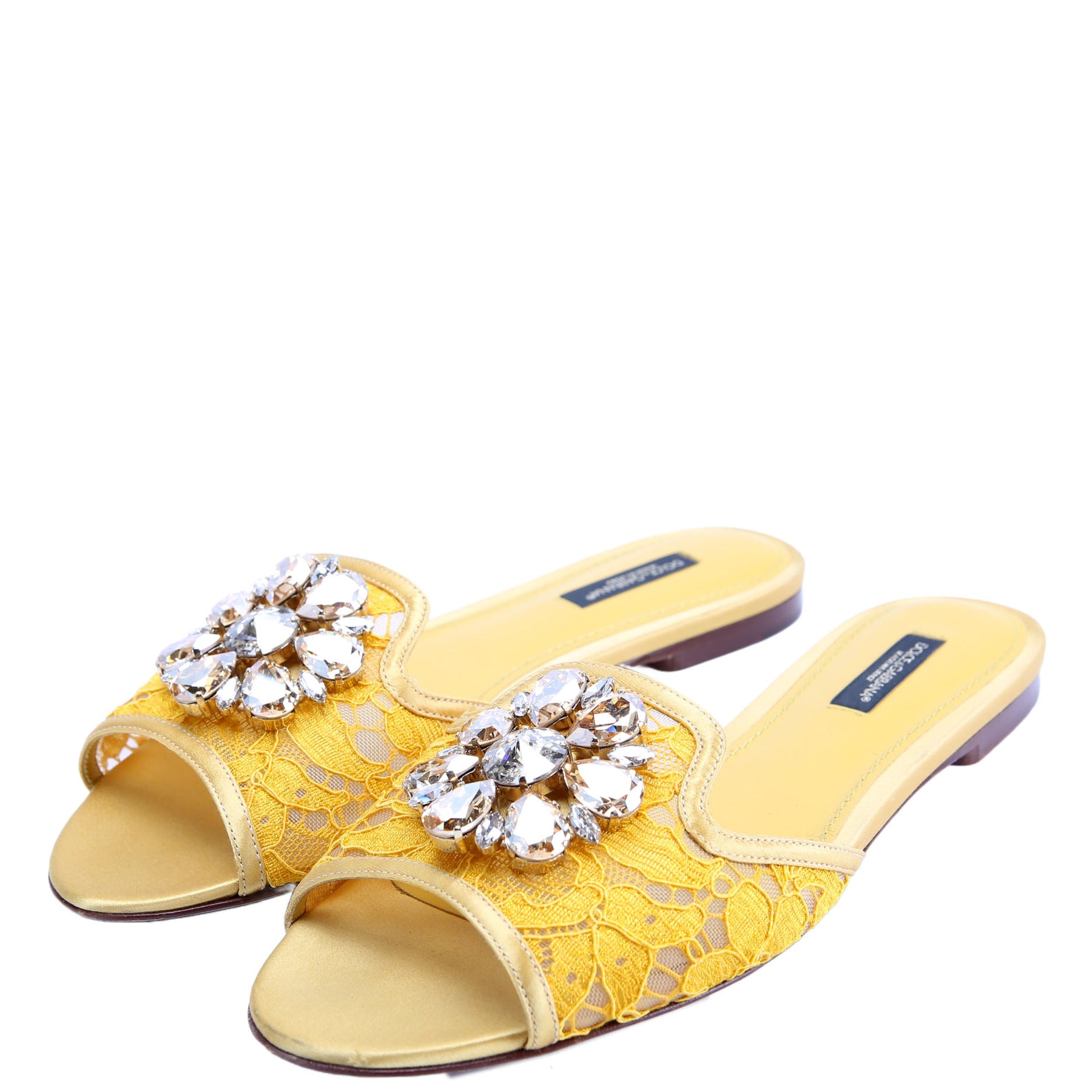 These pre-owned Dolce & Gabbana Lace Crystal Embellished Sandals are guaranteed 100% authentic.