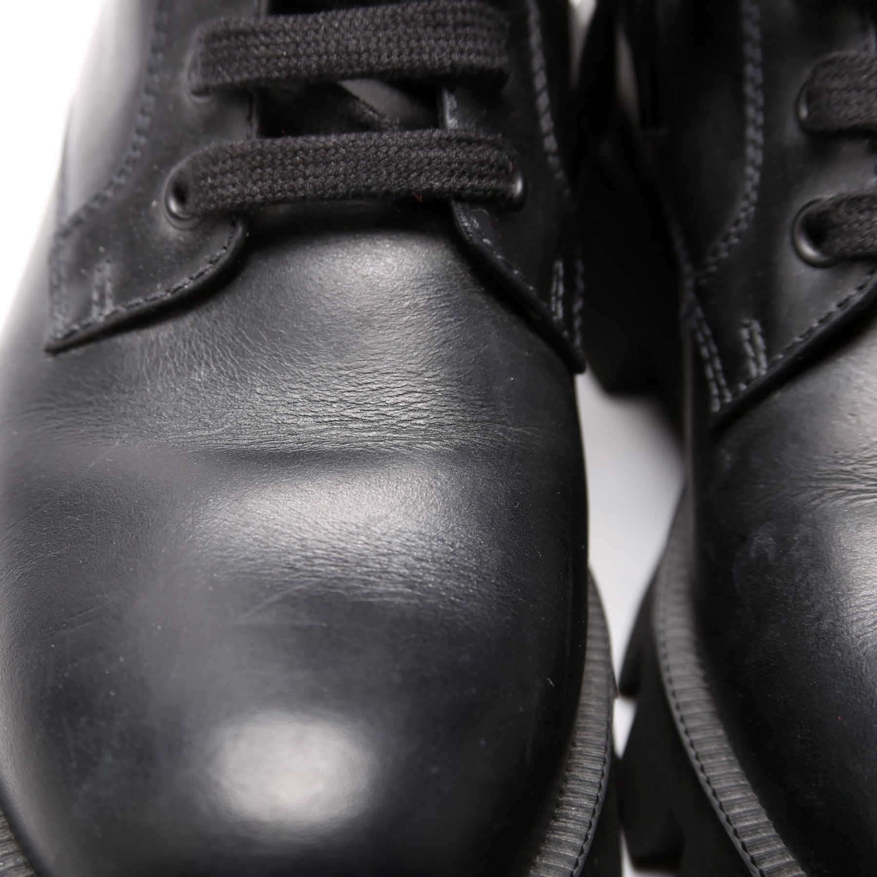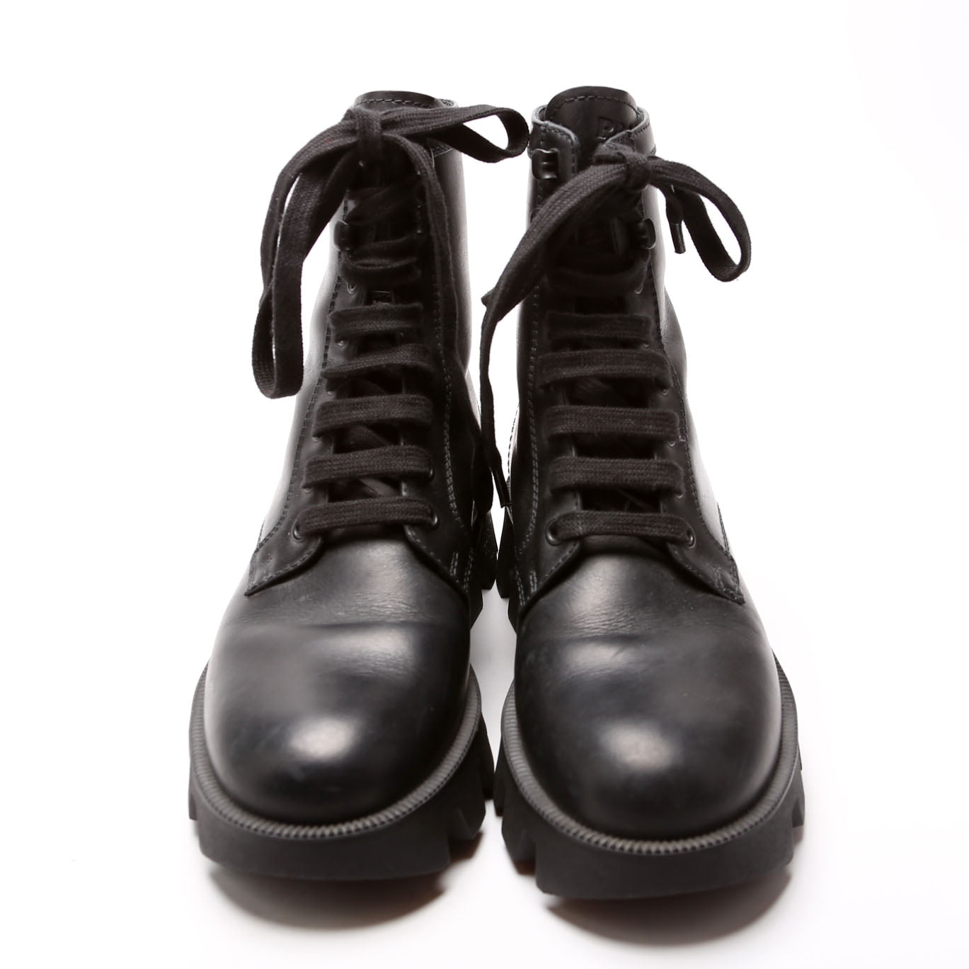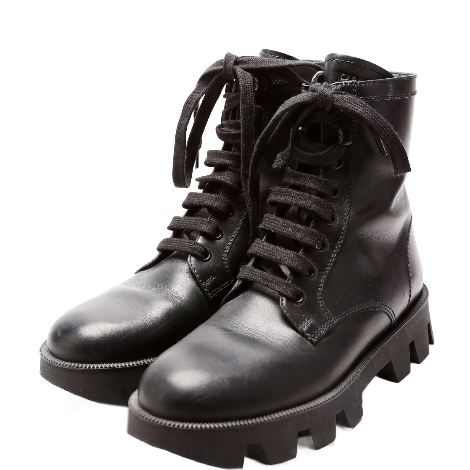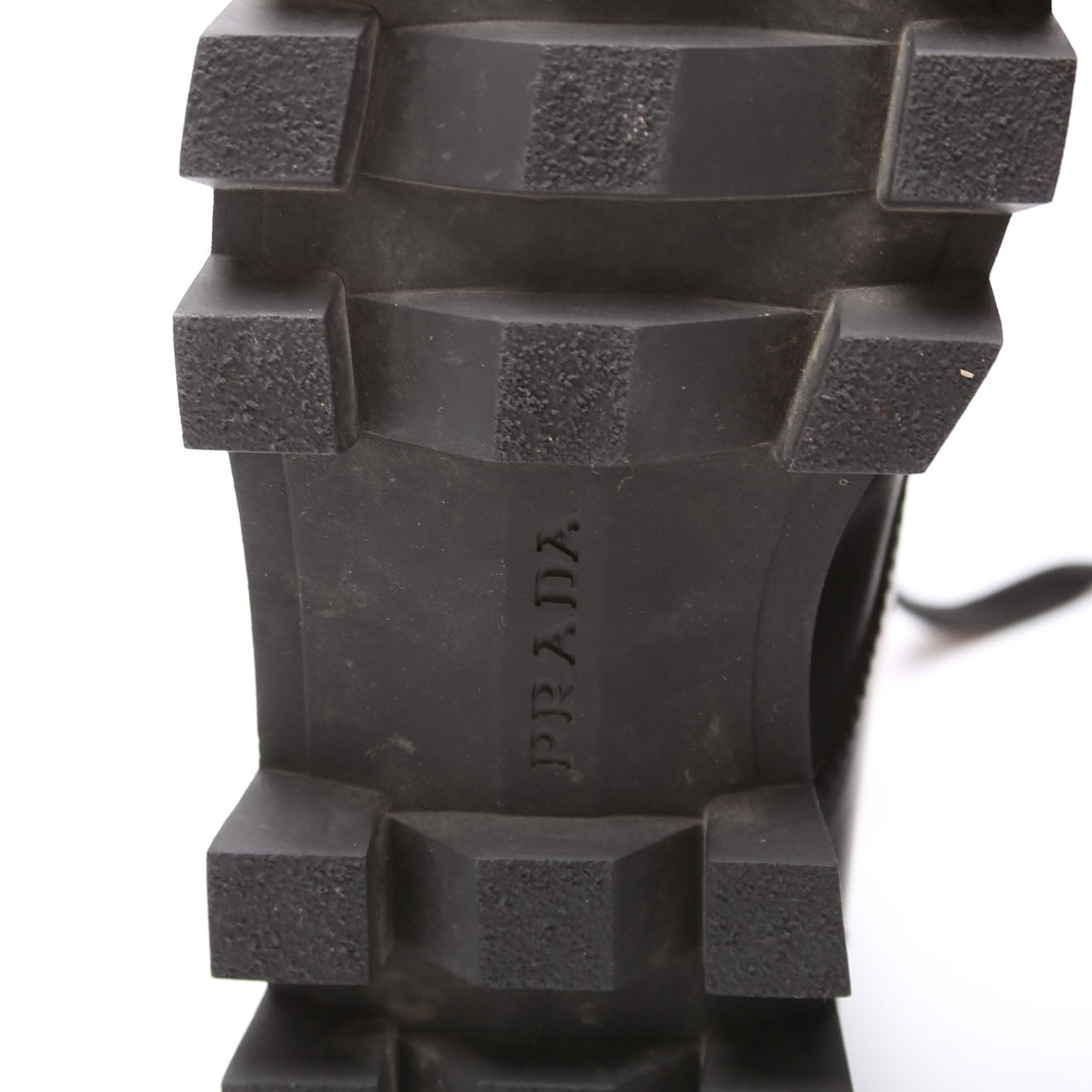 These pre-owned Prada Re-Nylon/Leather Lace Up Combat Boots are guaranteed 100% authentic.