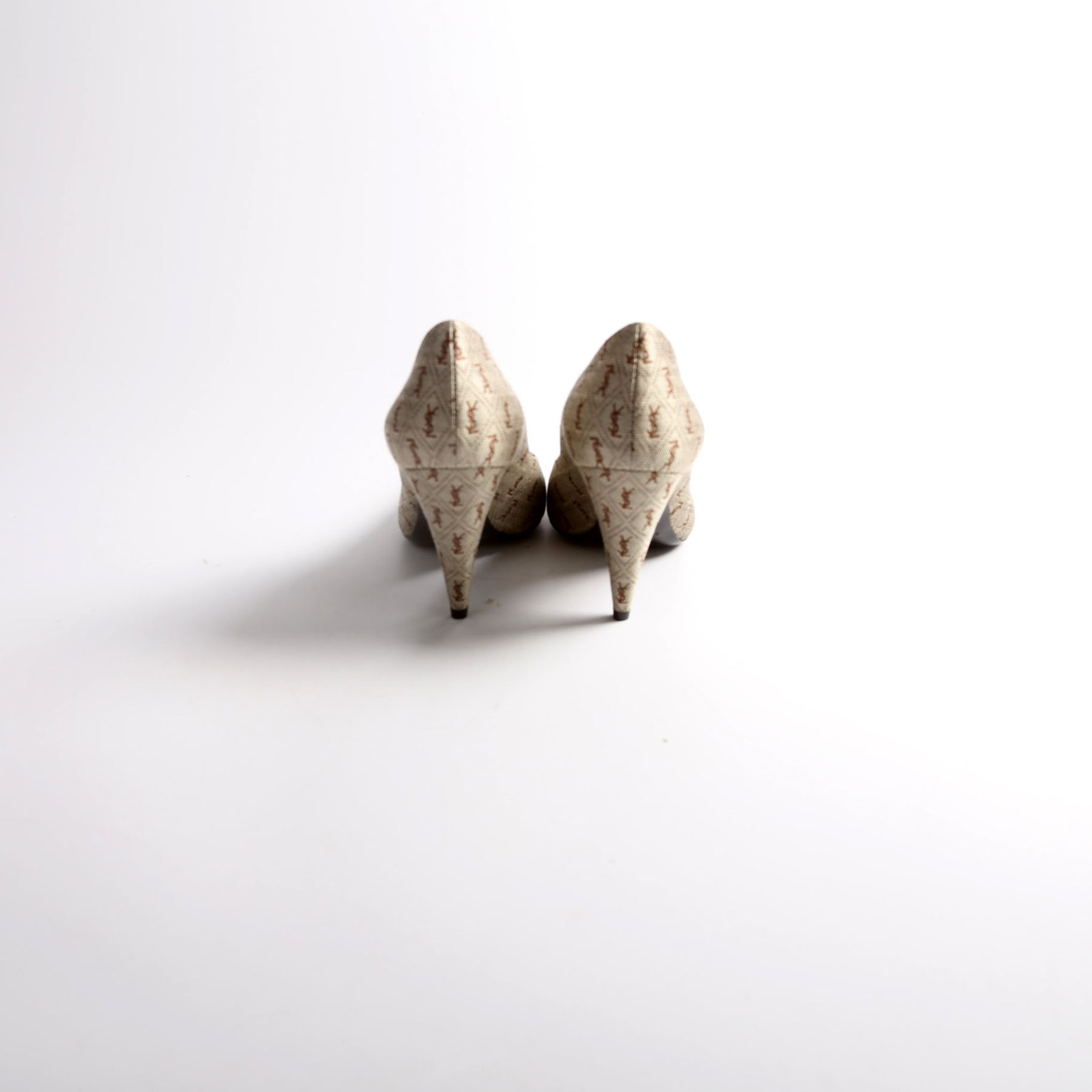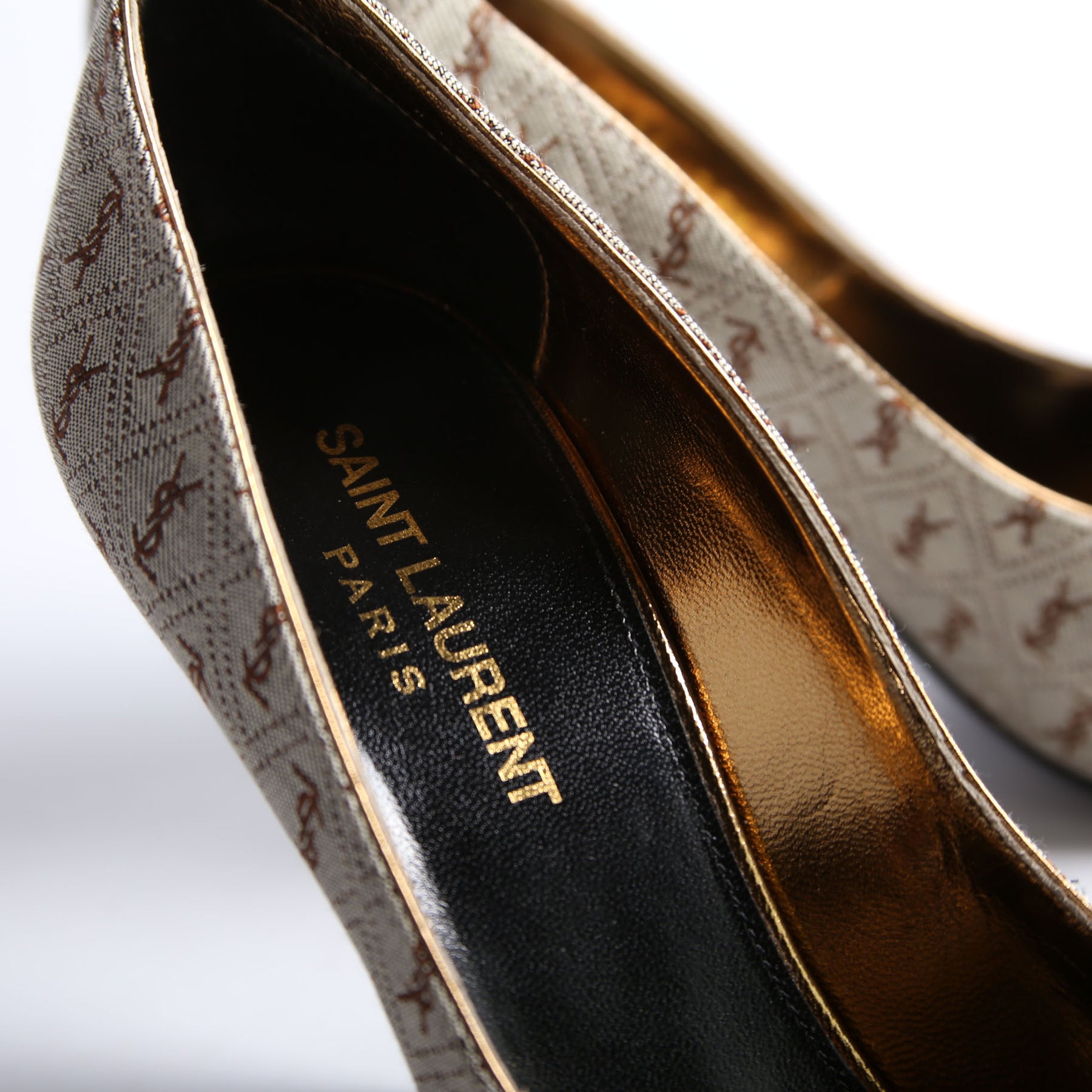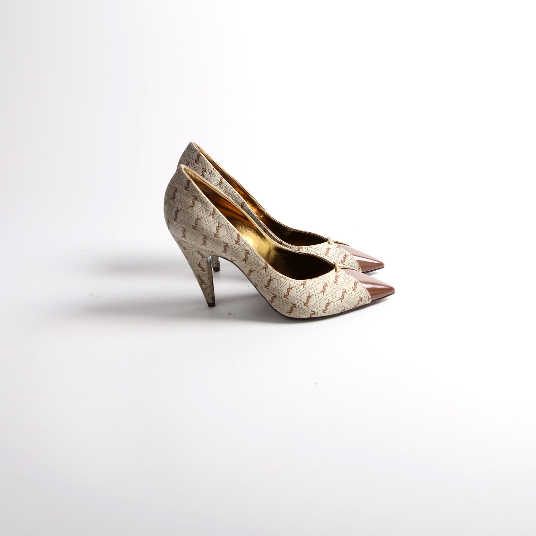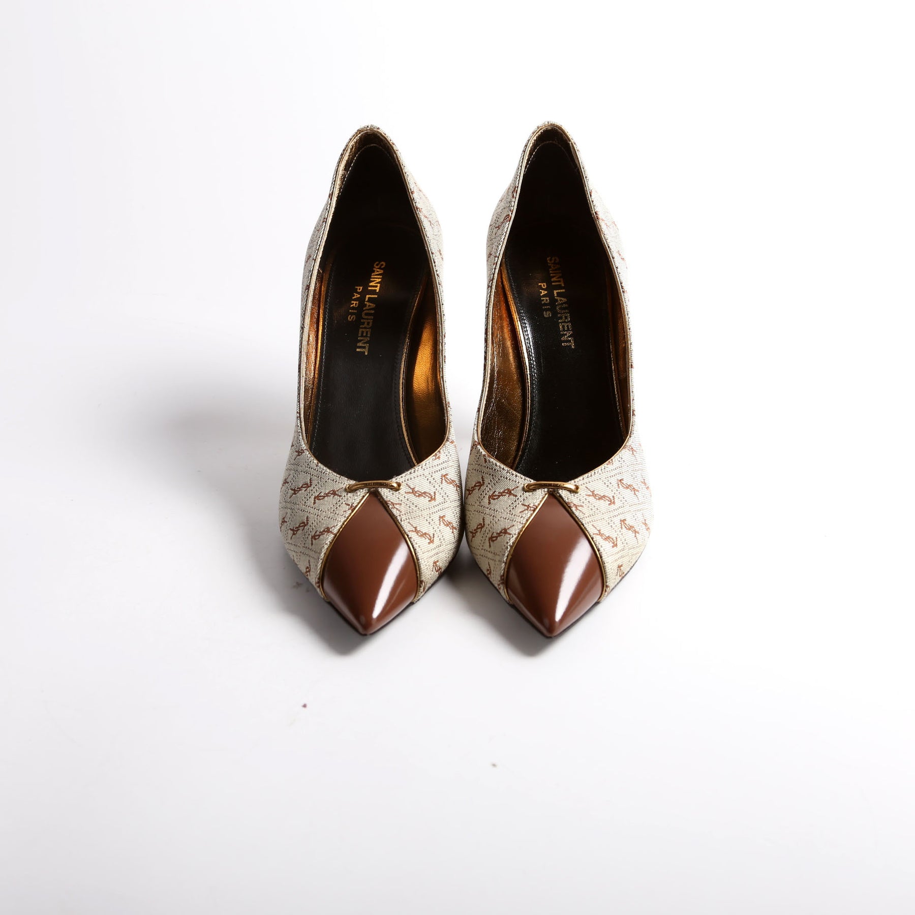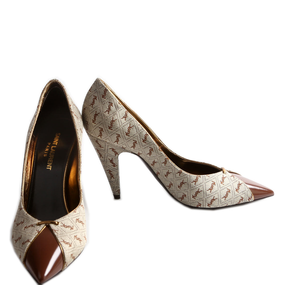 This pre-owned Saint Laurent Lola Cap Toe Monogram Pumps guaranteed 100% authentic.