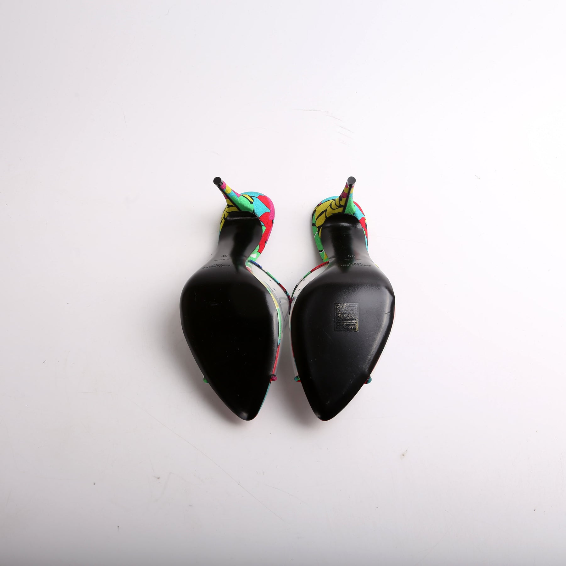 These pre-owned Saint Laurent Lolita Floral Heels are guaranteed 100% authentic.