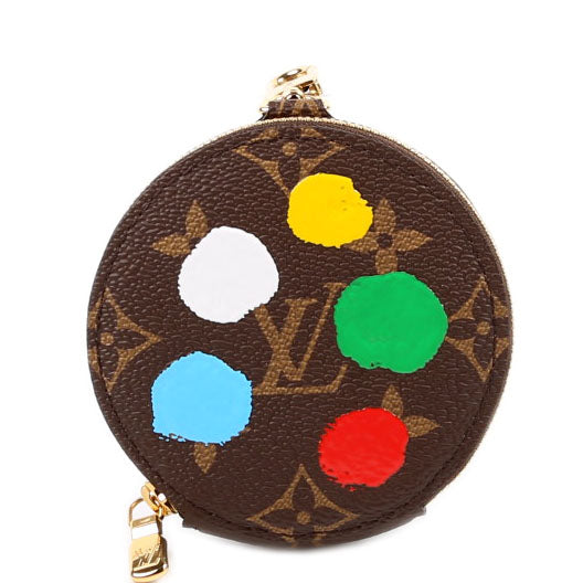 This pre-owned Louis Vuitton. Yayoi Kusama Pochette Accessories Round Coin Purse is guaranteed 100% authentic. The exterior is in the classic Louis Vuitton Monogram coated canvas.