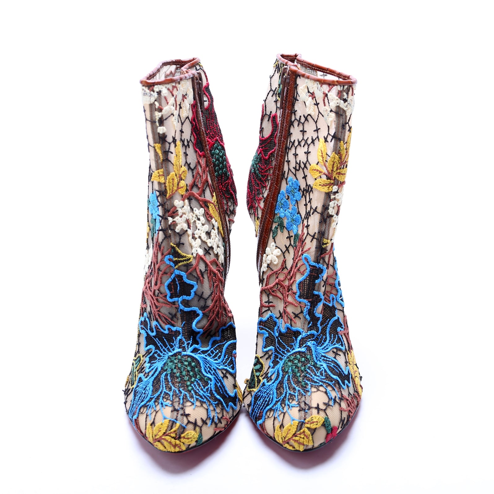 These pre-owned Christian Louboutin Miss Tennis Mesh Embroidered Booties are guaranteed 100% authentic.