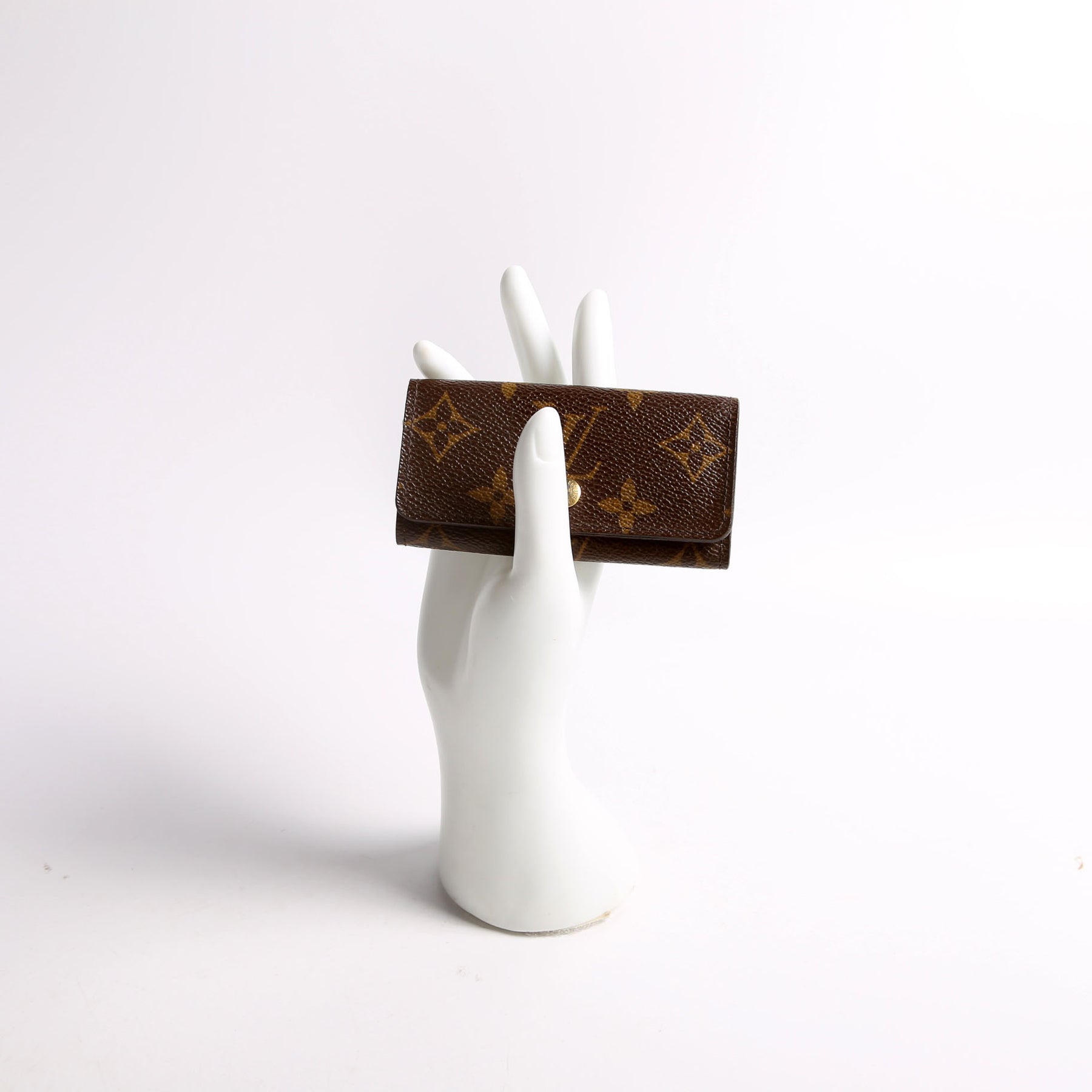 This pre-owned Louis Vuitton Multicles 4 Ring is guaranteed 100% authentic. The exterior is in the classic Louis Vuitton Monogram coated canvas.