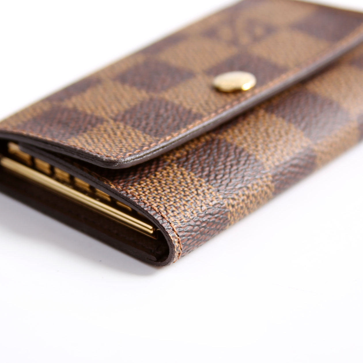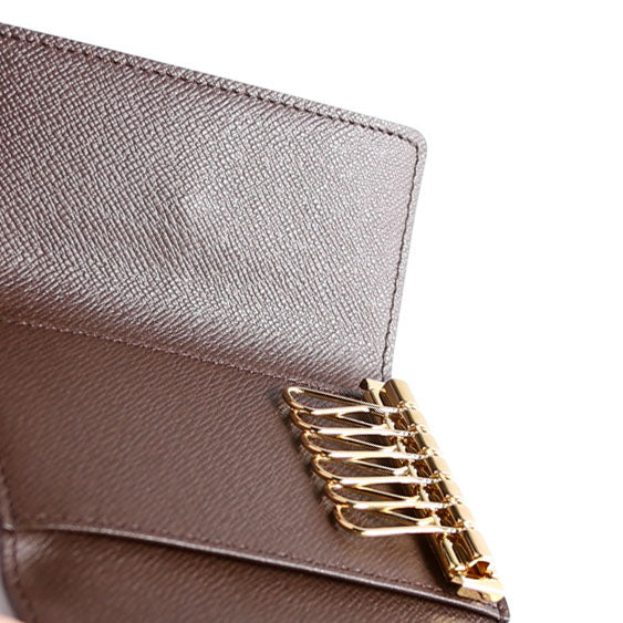 This pre-owned Louis Vuitton Multicles 6 Ring is guaranteed 100% authentic. The exterior is in the classic Louis Vuitton Damier Ebene coated canvas.