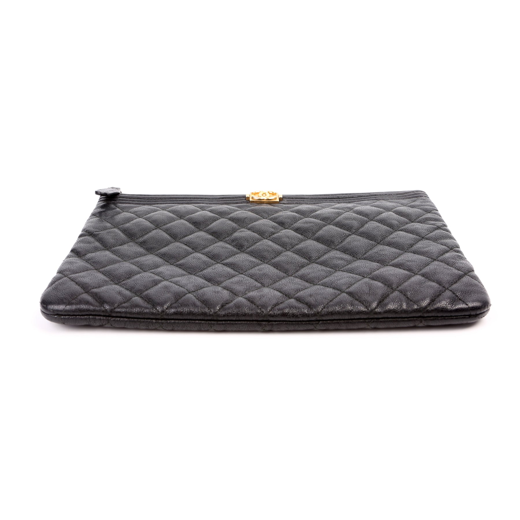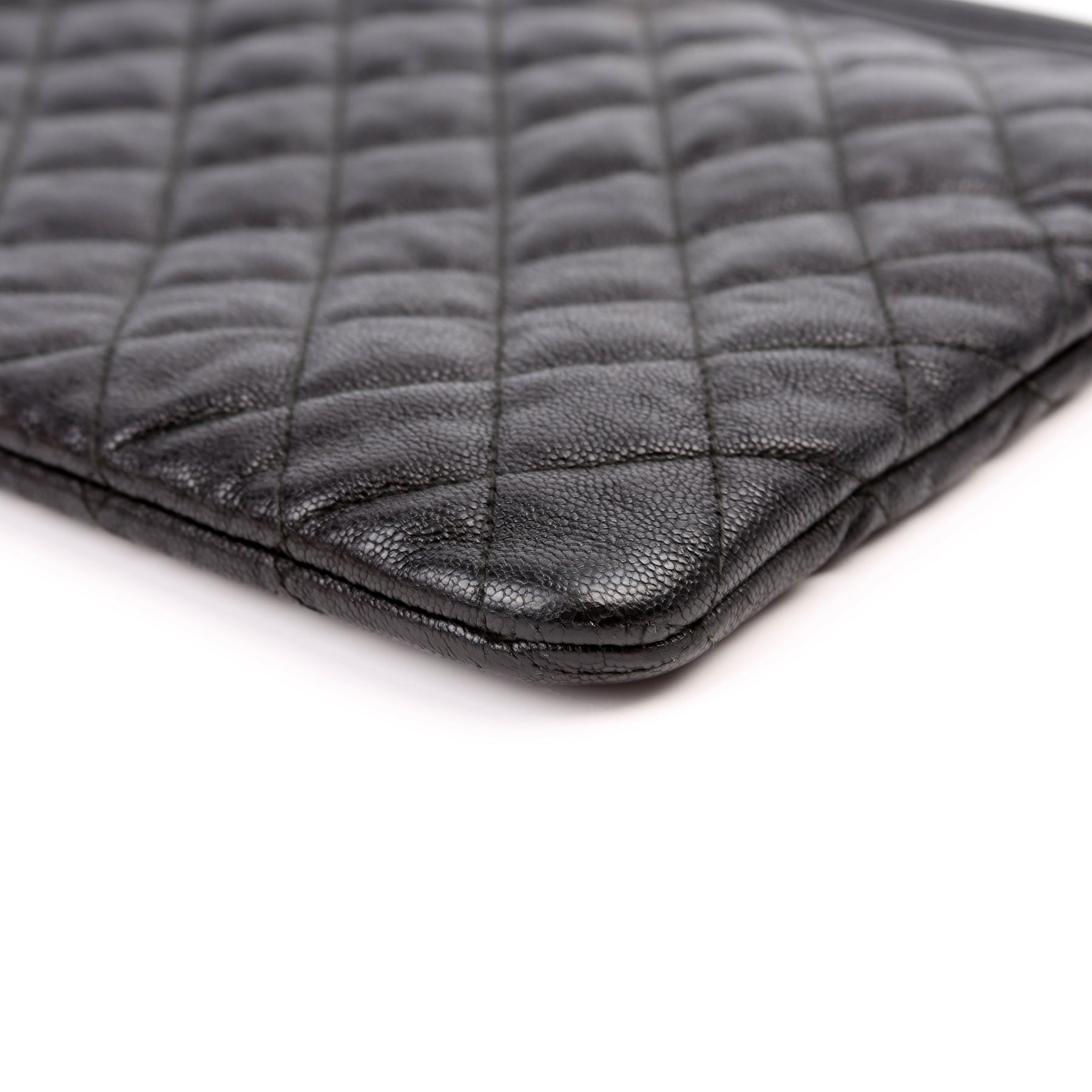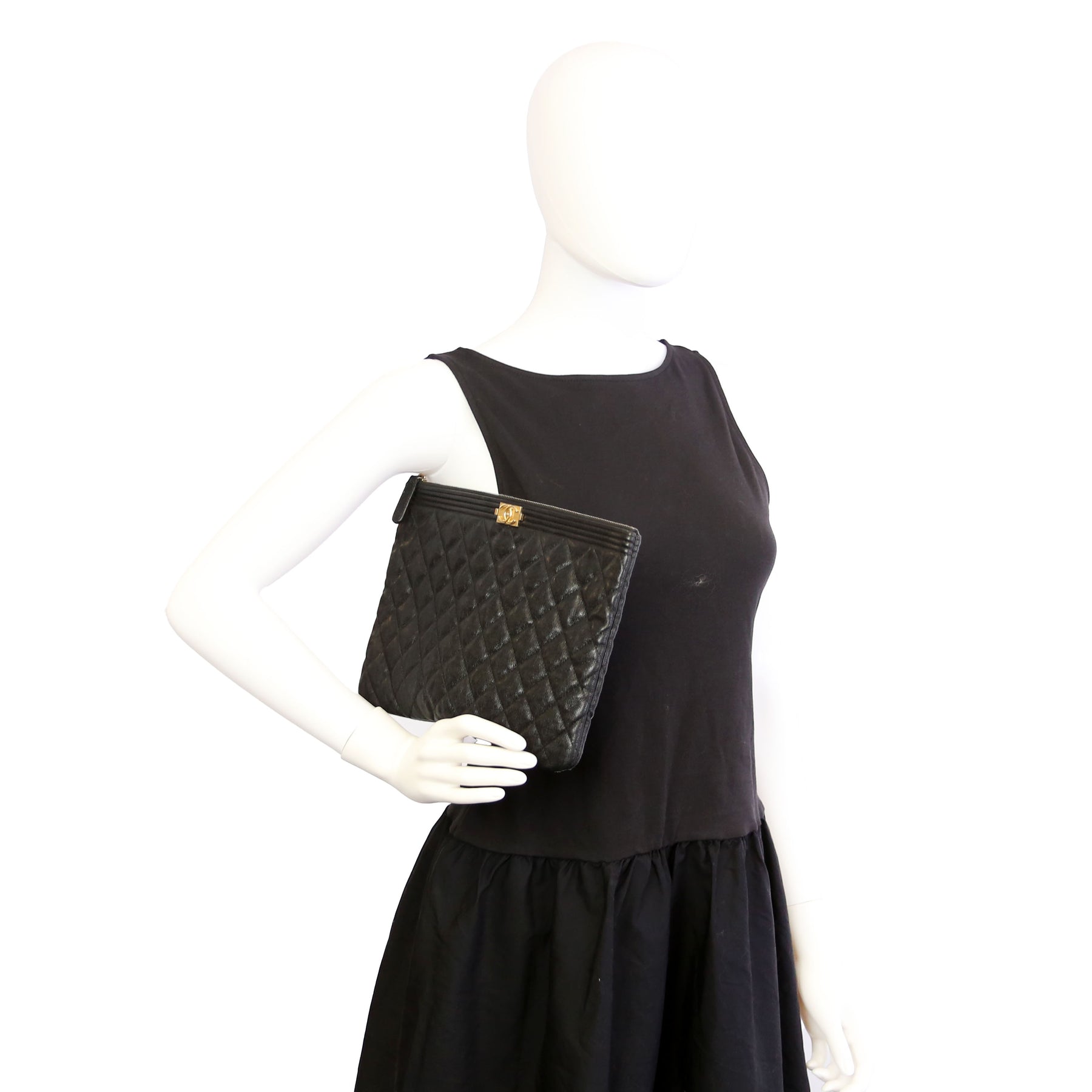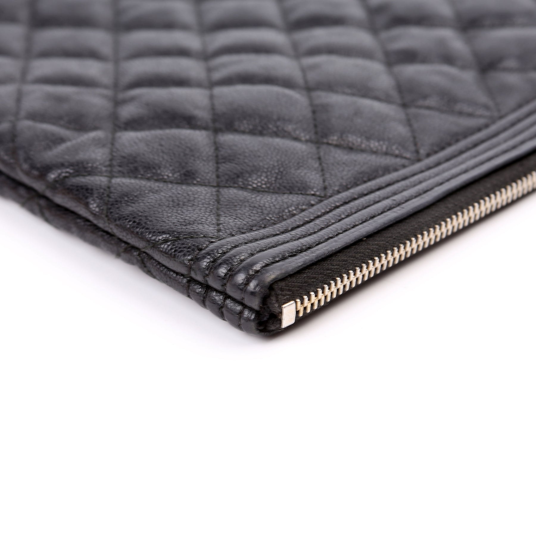 This pre-owned Chanel O Case Boy Medium is guaranteed 100% authentic. The exterior is in the classic Chanel Caviar leather.
