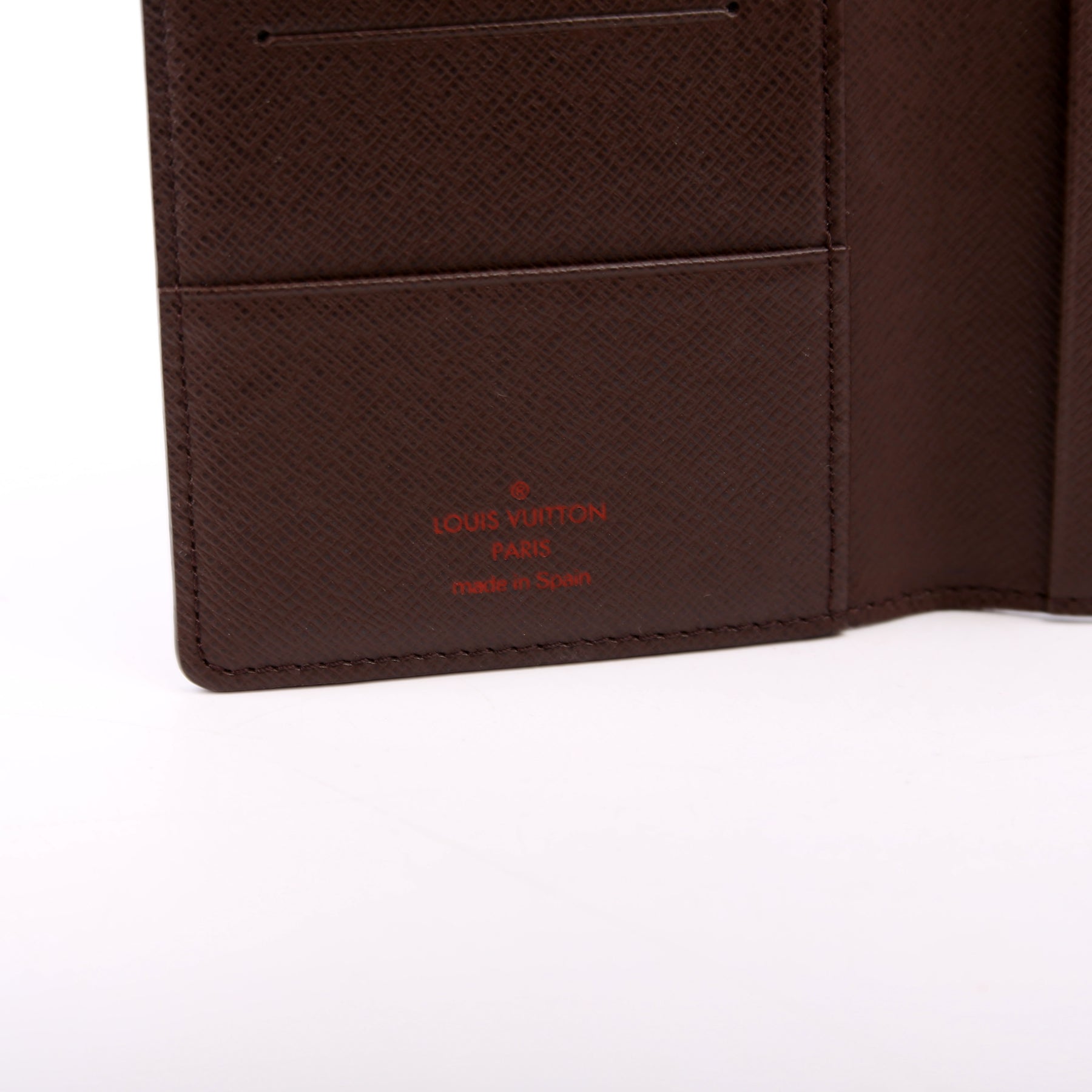 This pre-owned Louis Vuitton Passport Holder is guaranteed 100% authentic. The exterior is in the classic Louis Vuitton Damier Ebene coated canvas.