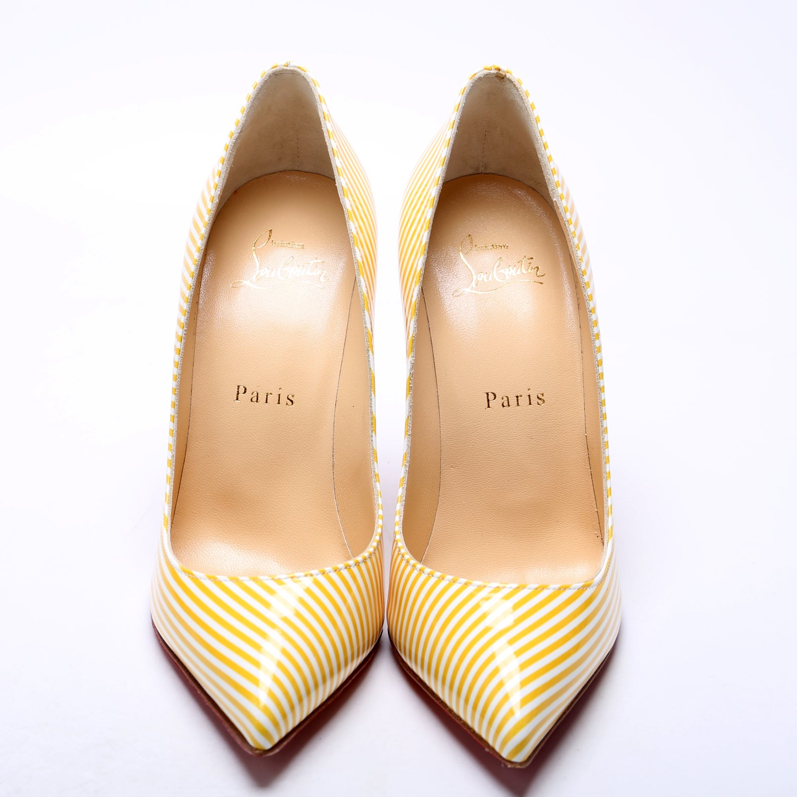 Patent Pigalle Follies Stripes 100MM Size 36 Yellow