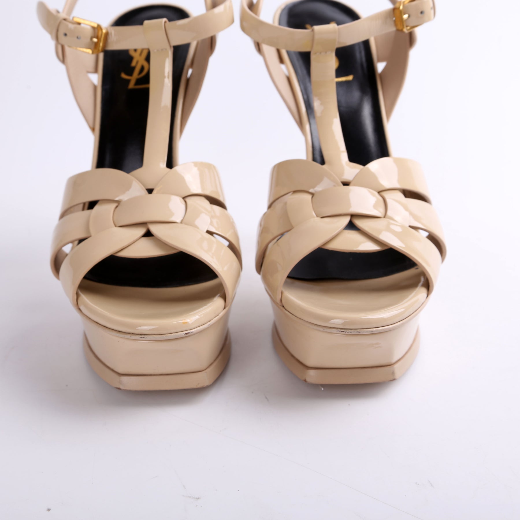 These pre-owned Saint Laurent Tribute Platform Sandal Heels are guaranteed 100% authentic.