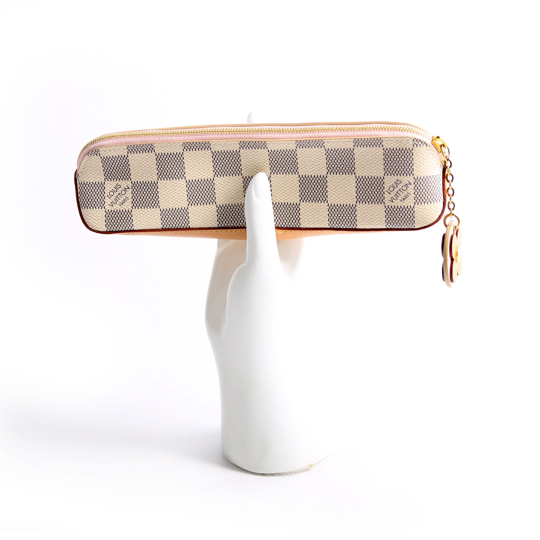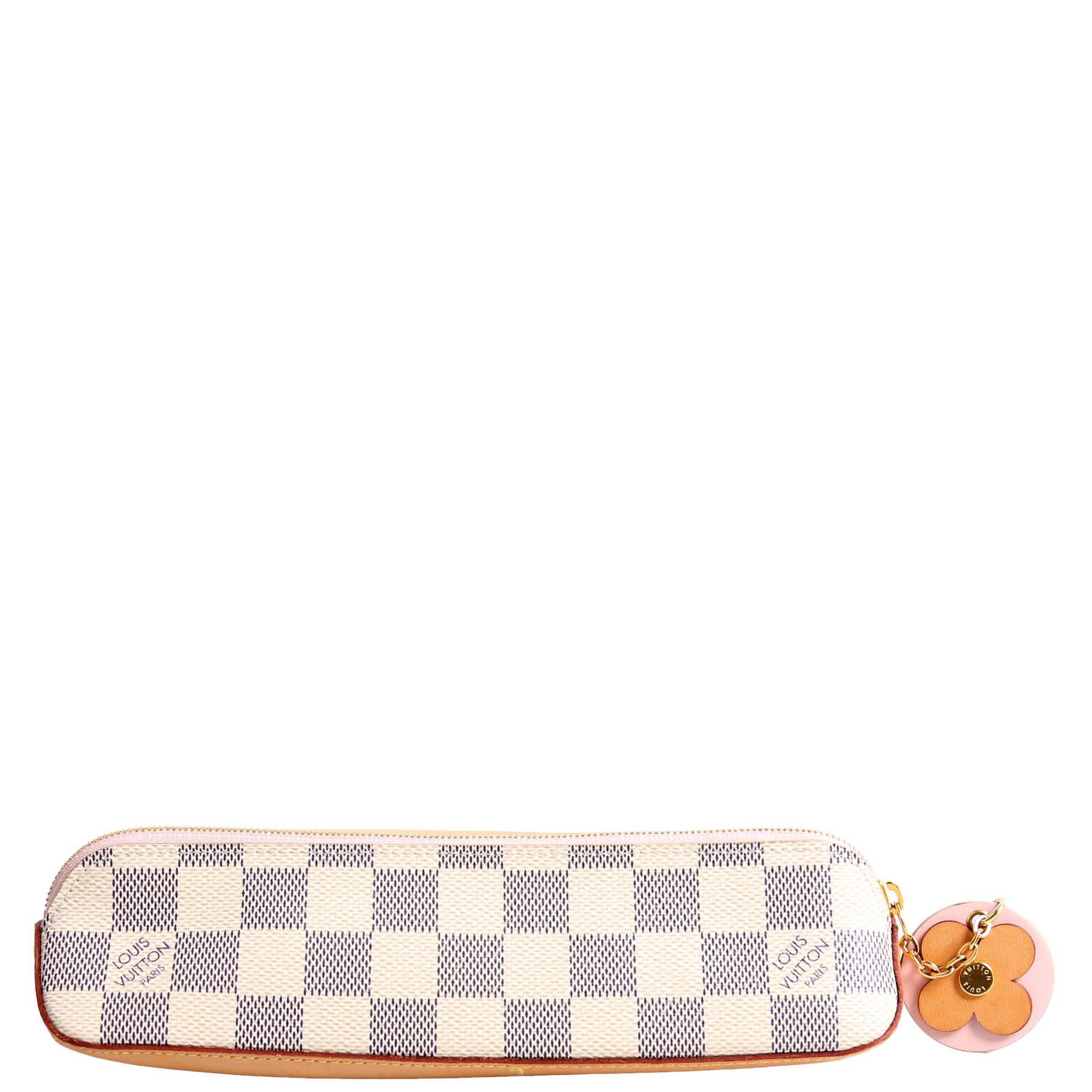 This pre-owned Louis Vuitton Pencil Pouch Elisabeth is guaranteed 100% authentic. The exterior is in the classic Louis Vuitton Damier Azur coated canvas.