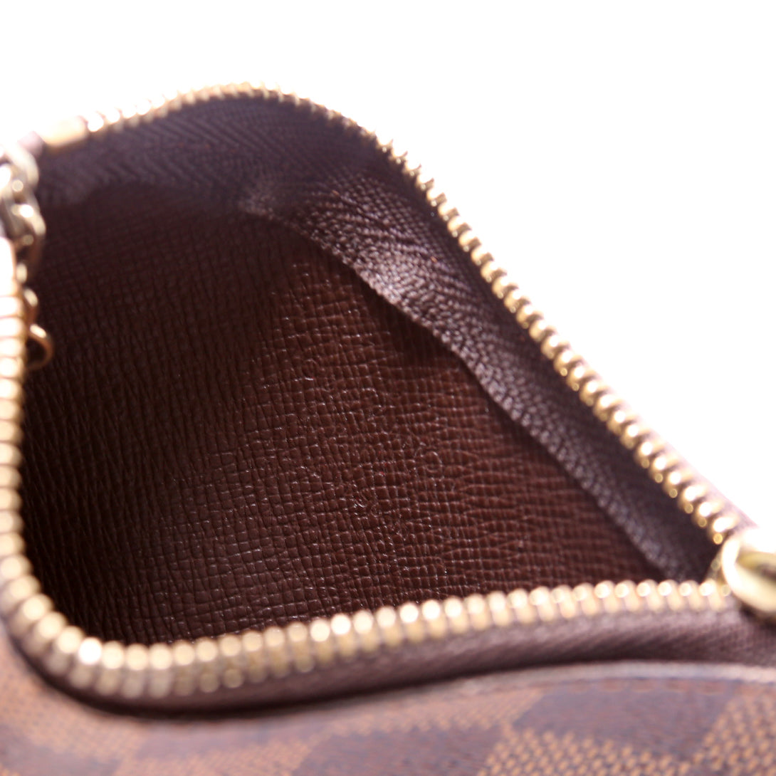 This pre-owned Louis Vuitton Pochette Cles is guaranteed 100% authentic. The exterior is in the classic Louis Vuitton Damier Ebene coated canvas.