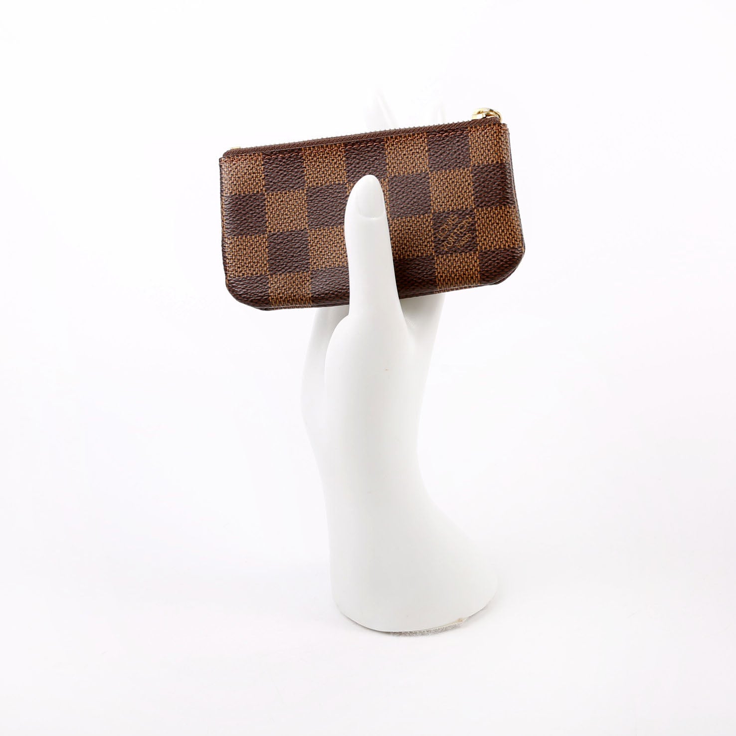 This pre-owned Louis Vuitton Pochette Cles is guaranteed 100% authentic. The exterior is in the classic Louis Vuitton Damier Ebene coated canvas.