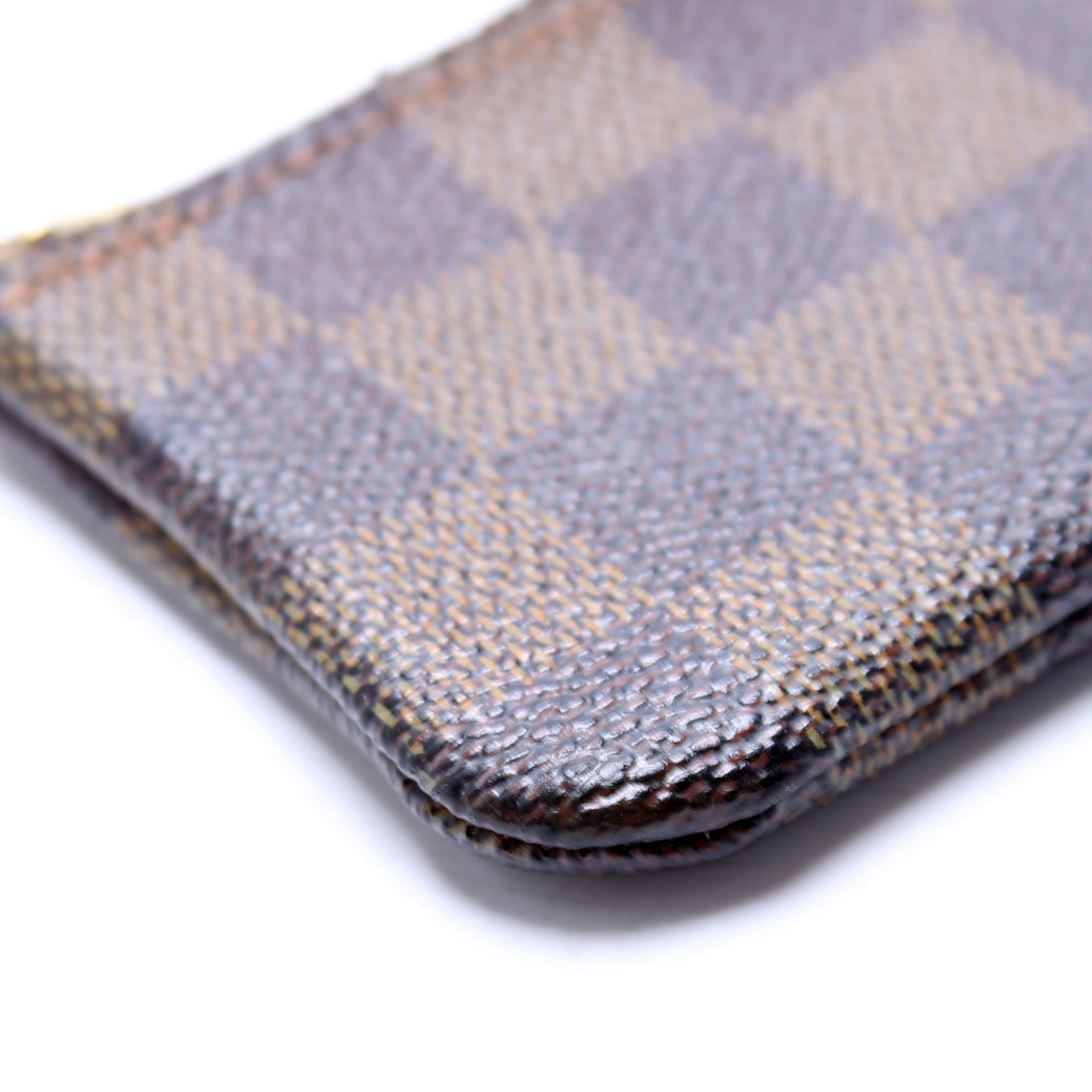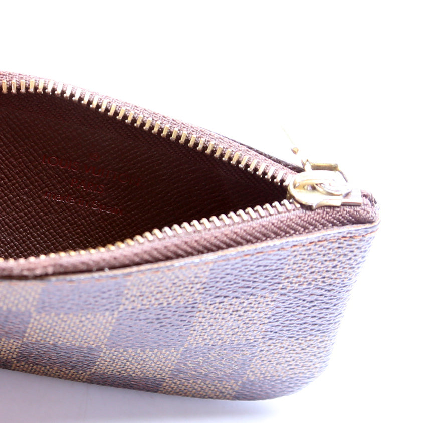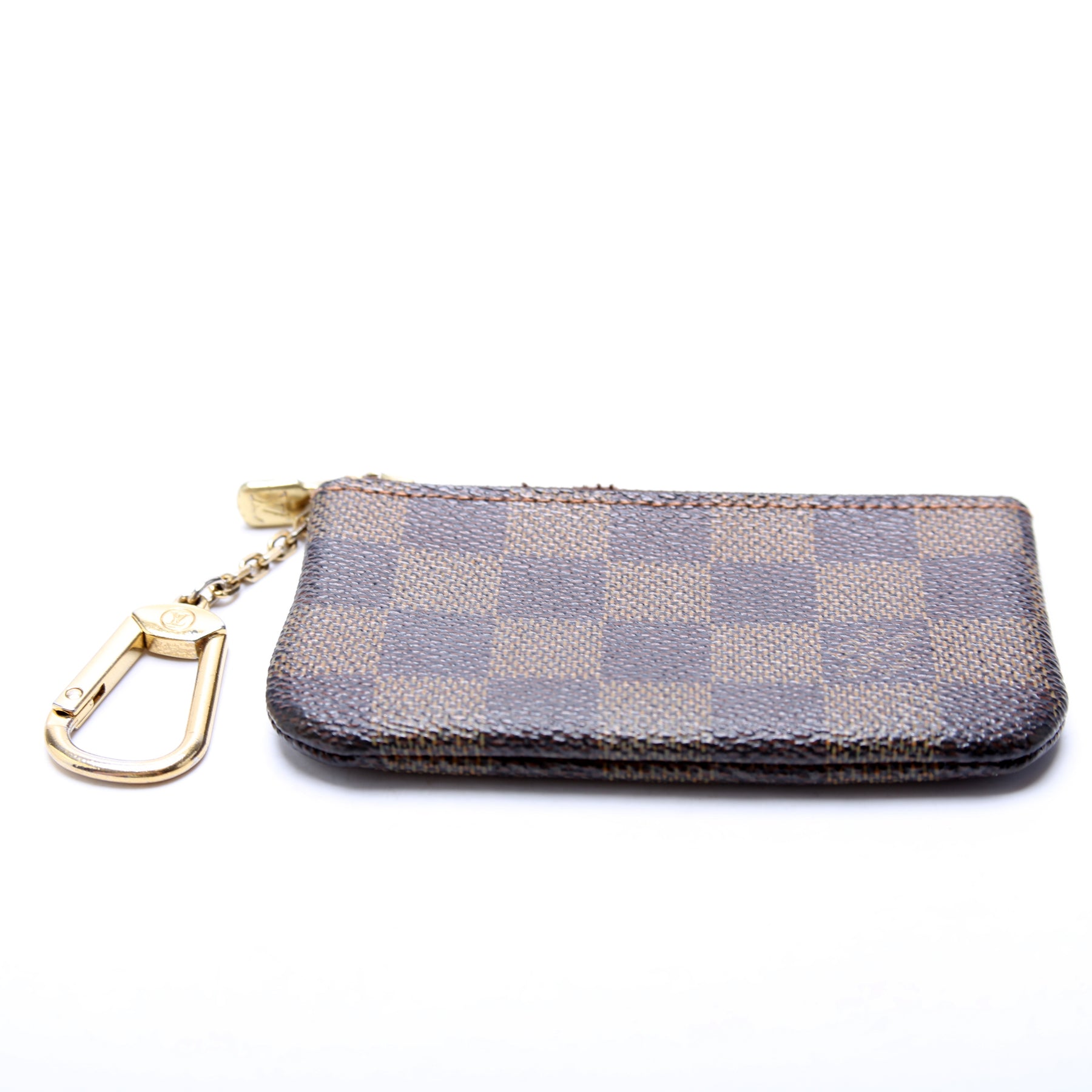 This pre-owned Louis Vuitton Pochette Cles is guaranteed 100% authentic. The exterior is in the classic Louis Vuitton Damier Ebene coated canvas.