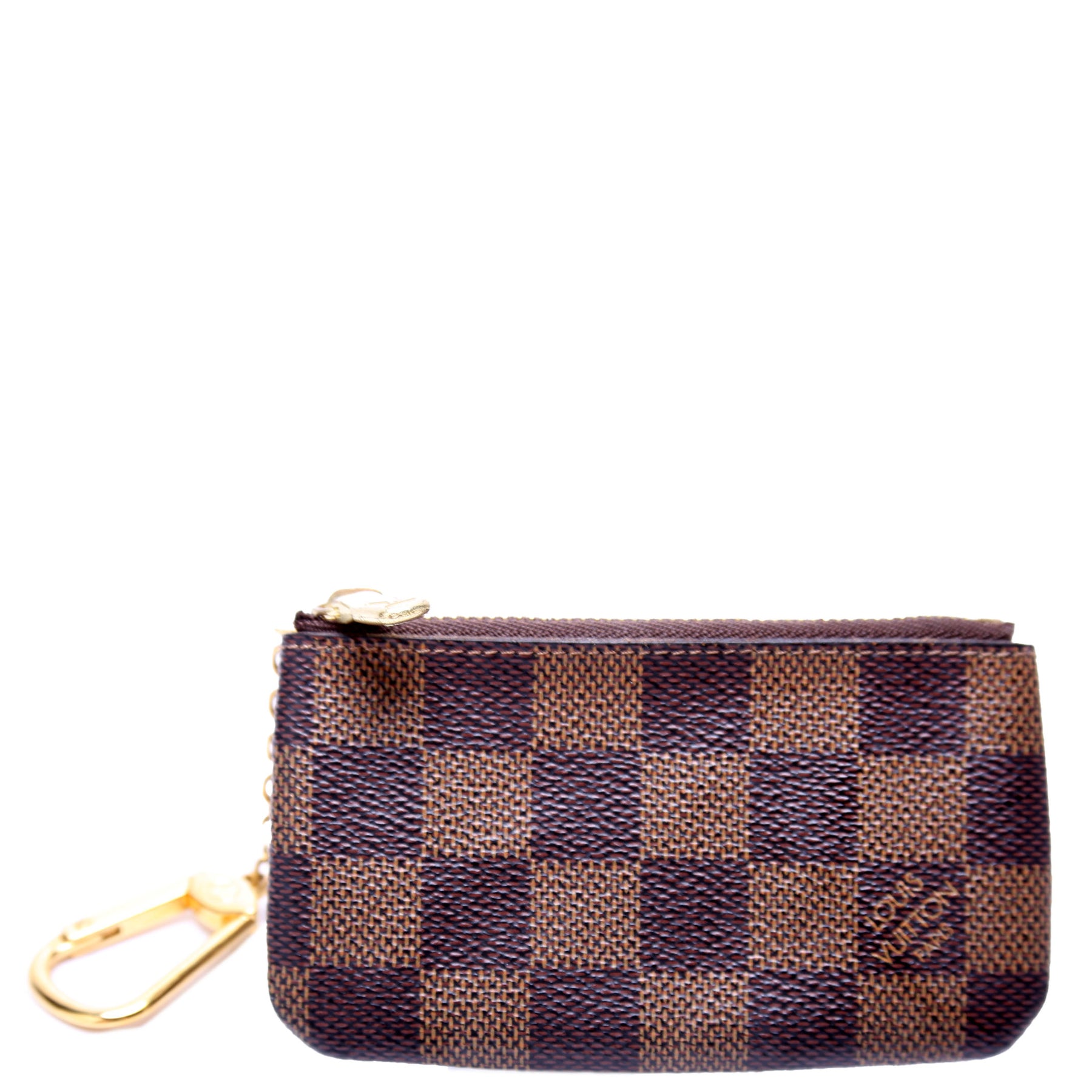 This pre-owned Louis Vuitton Pochette Cles is guaranteed 100% authentic. The exterior is in the classic Louis Vuitton Damier Ebene coated canvas.
