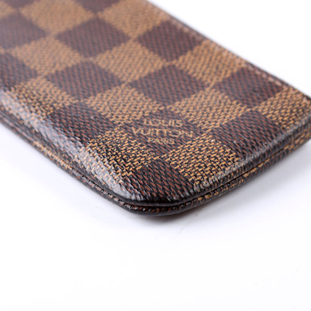 This pre-owned Louis Vuitton Pochette Cles is guaranteed 100% authentic. The exterior is in the classic Louis Vuitton Damier Ebene coated canvas.